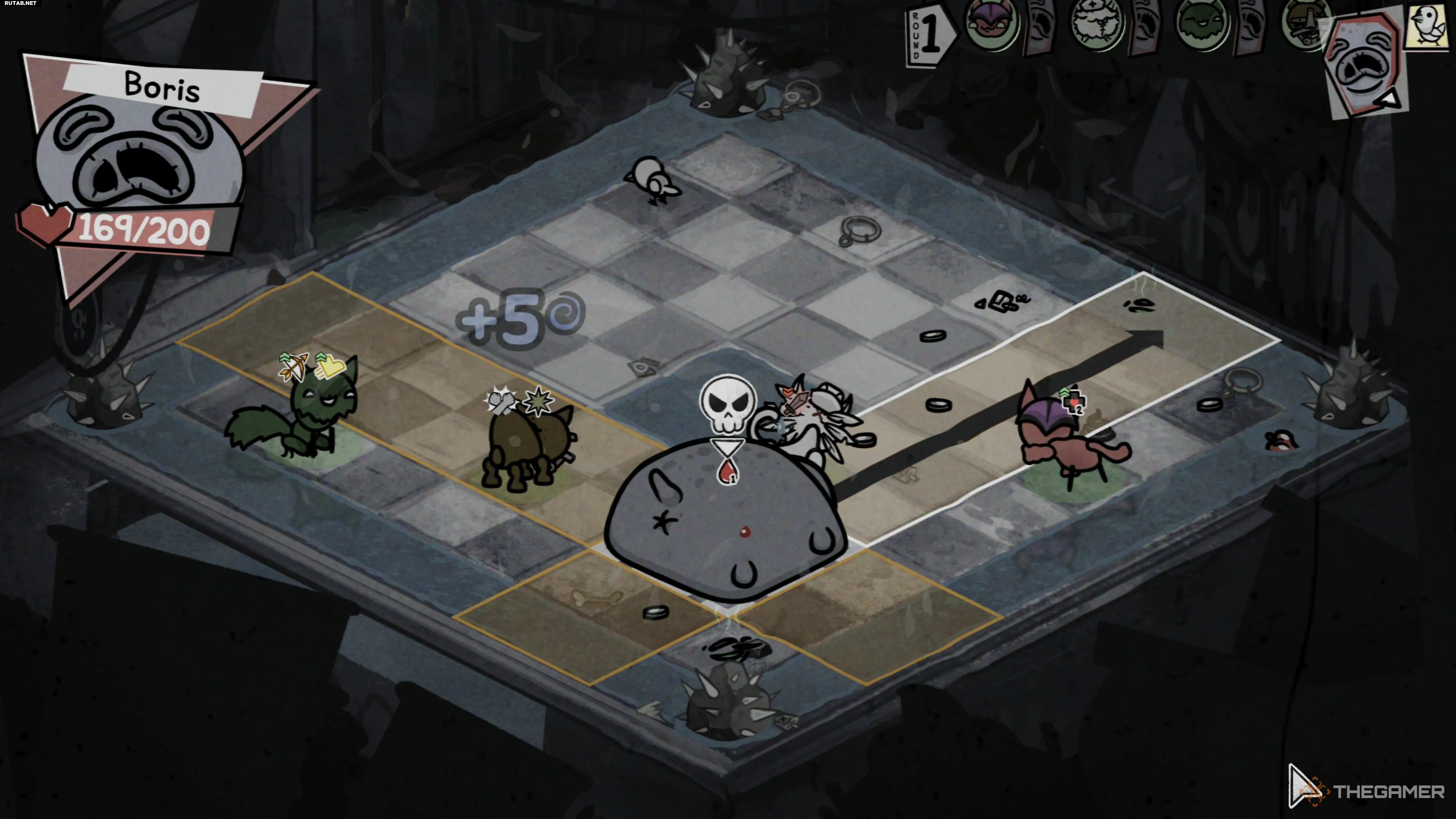 Вот тут-то всё и становится интереснее, потому что Борис не прекращает двигаться после окончания своего хода. Видите ли, каждый раз, когда Борис получает урон, он перемещается на одну клетку в сторону источника. Так что, если кто-то из ваших бойцов находится между вами и им и находится так близко, мы не рекомендуем атаковать его, иначе он врежется в них, нанося по пути приличный урон.