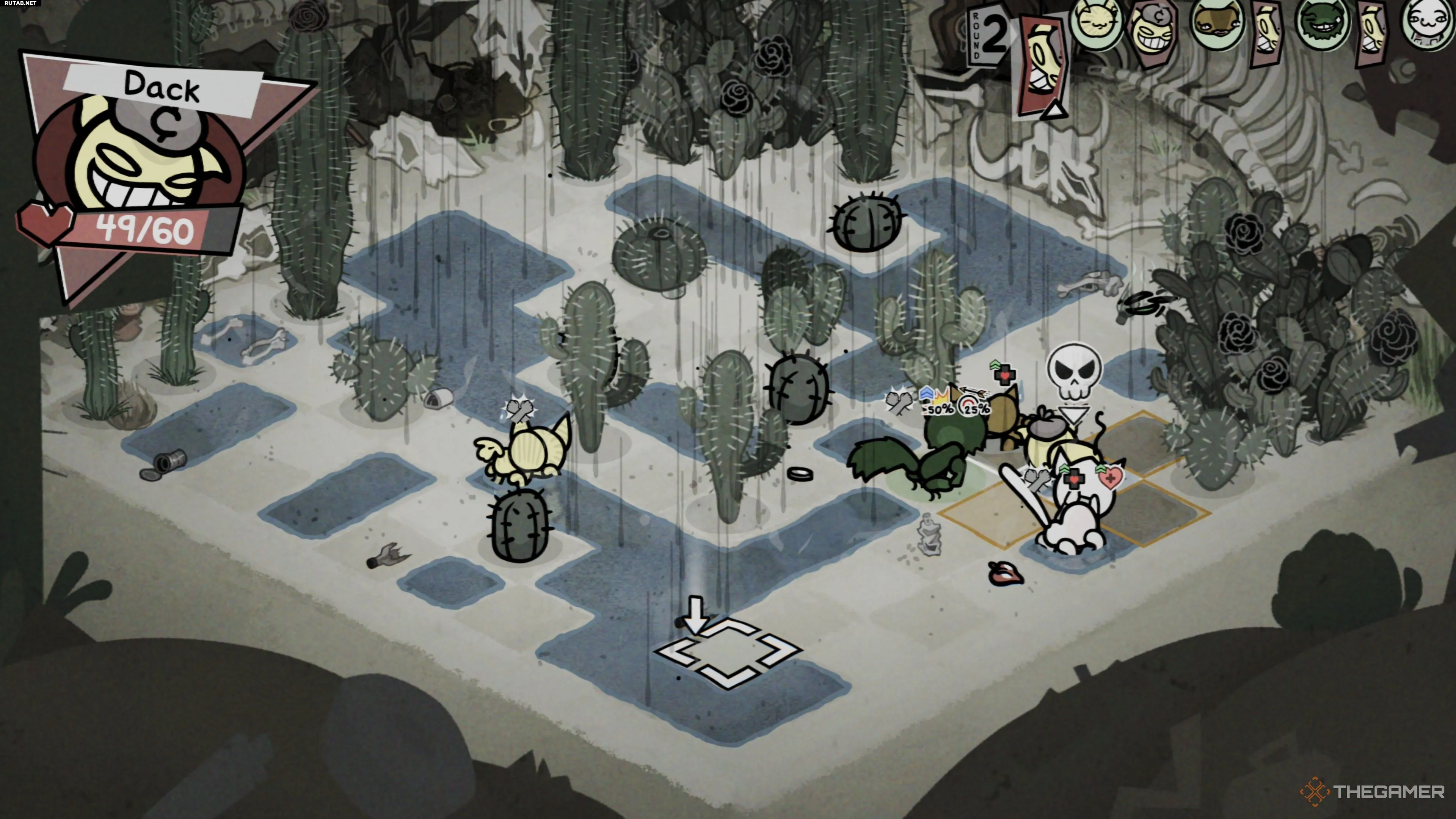 Помимо нанесения урона вашим юнитам, Дэк использует эту атаку, чтобы заставить вас выронить монету на землю. Мы вернёмся к этому чуть позже, но вам следует изо всех сил стараться подбирать свои монеты до того, как он до них доберётся. Кроме того, если у вашего Танка есть способность меняться местами с союзником, чтобы принять на себя входящий урон, часто используйте её в этом бою!