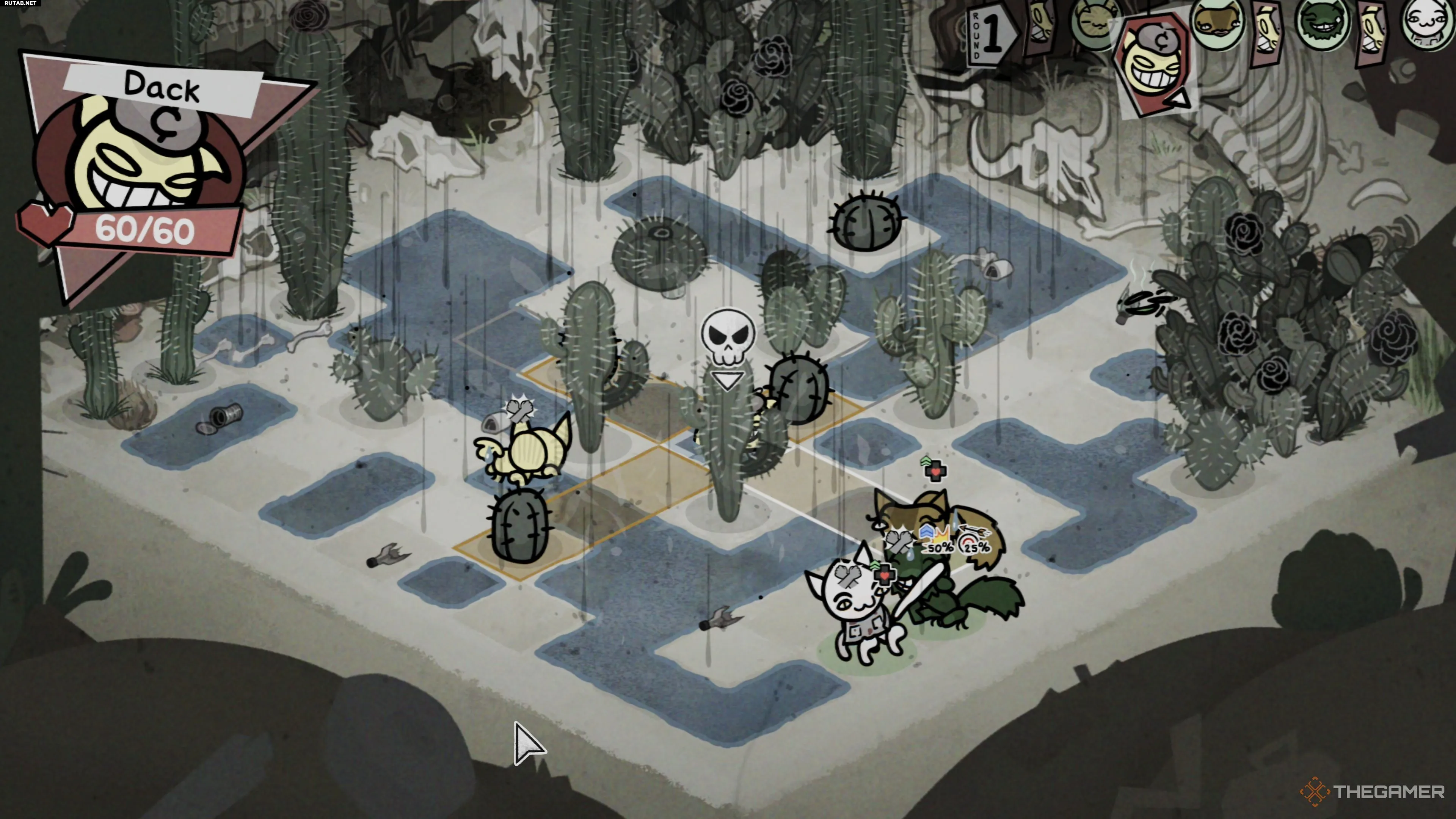 Как уже упоминалось, Дэк — это мини-босс, встречающийся на середине пути в Пустыне, первом регионе второго акта Mewgenics. Хотя у него, как и у большинства других боссов, всего несколько приёмов, с его особенностями справиться гораздо сложнее, и он наносит значительно больше урона, чем его предшественники. Сосредоточьтесь и приготовьтесь к смертельной схватке — этот противник вас сильно потреплет.Но, как вы знаете, мы должны предложить вам наши проверенные отряды, а также дать подробную информацию об этом персонаже. Хотя сложность по сравнению с предыдущими боями заметно возросла, он не кажется нереалистично сильным или несправедливым. Как только вы поймёте его уловки, вы окрасите пески Пустыни его кровью. Что? Он этого заслуживает, просто посмотрите, что он творит!