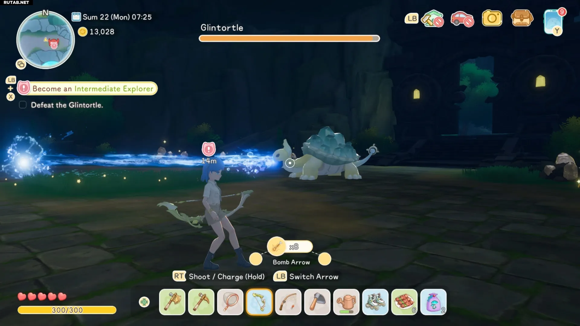 Чтобы победить Глинтортла, вам нужно целиться в его панцирь, когда он светится, так как это его слабое место. Мы настоятельно советуем использовать Взрывные Стрелы и Взрывные Снаряды, так как Глинтортл к ним уязвим. Также в этом бою используйте и лук, и рогатку — чем больше у вас боеприпасов, тем лучше.