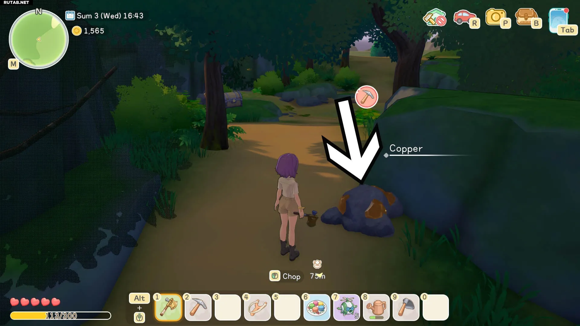 Медную руду можно найти по всей карте, но в начале игры путь к северу от дома — лучшее место для её поиска.