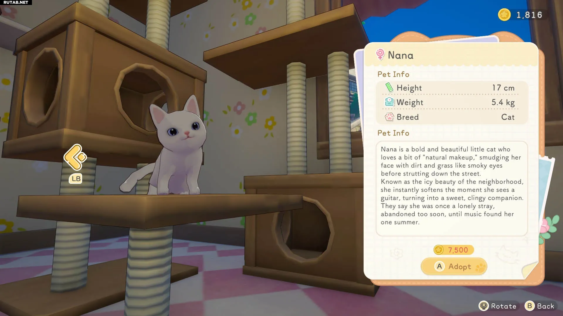 Гораздо более простой способ получить обычного питомца — усыновить его за плату в зоомагазине. Зайдите в зоомагазин (где работает Стелла) и в дальнем углу у кассы вы увидите зону с двумя животными.