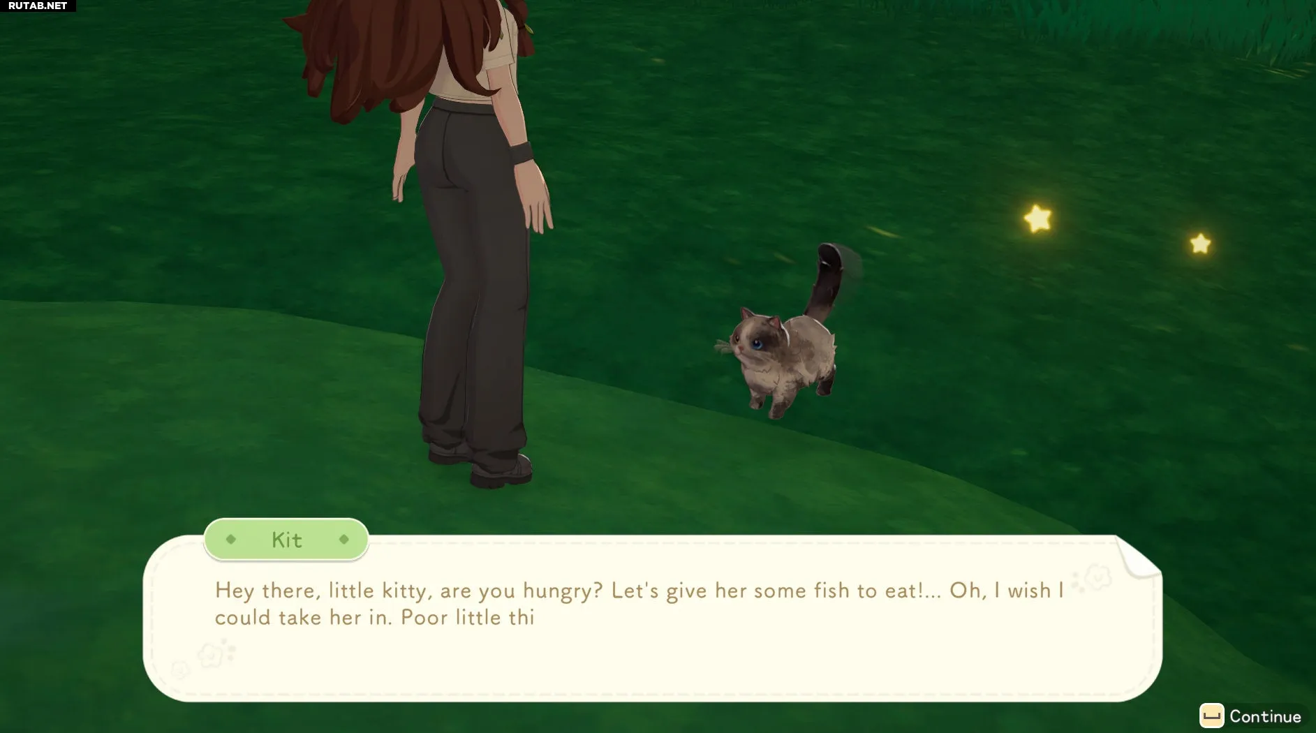 После того как вы сделаете лежанку, вернитесь к Пастелле и выберите опцию «Насчет того котенка…» (Текст будет другим, если вы встретили собаку).