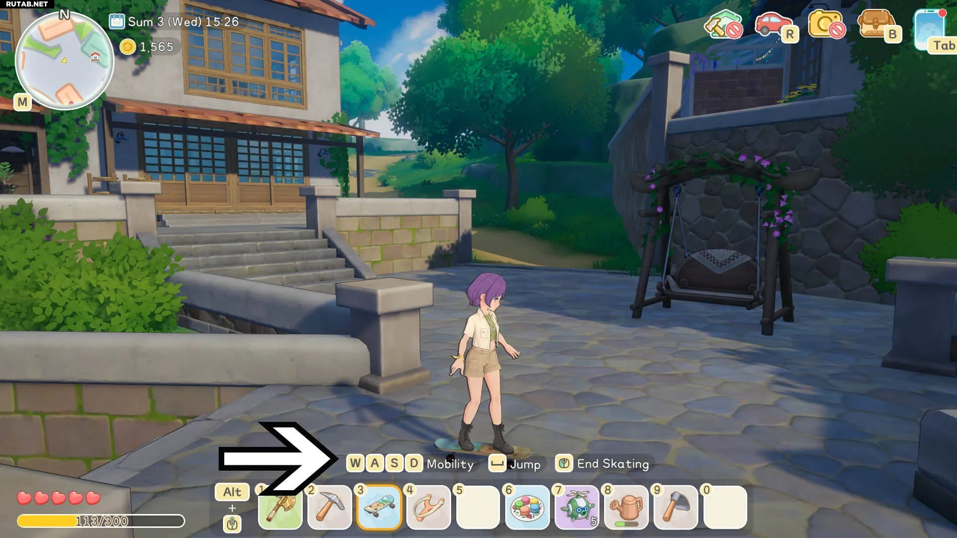 Когда ваш персонаж держит скейтборд, используйте указанные команды над панелью быстрого доступа, чтобы встать на него и начать движение. Вы даже можете выполнять трюки в прыжке. Чтобы двигаться вперёд и менять направление, просто используйте клавиши управления.