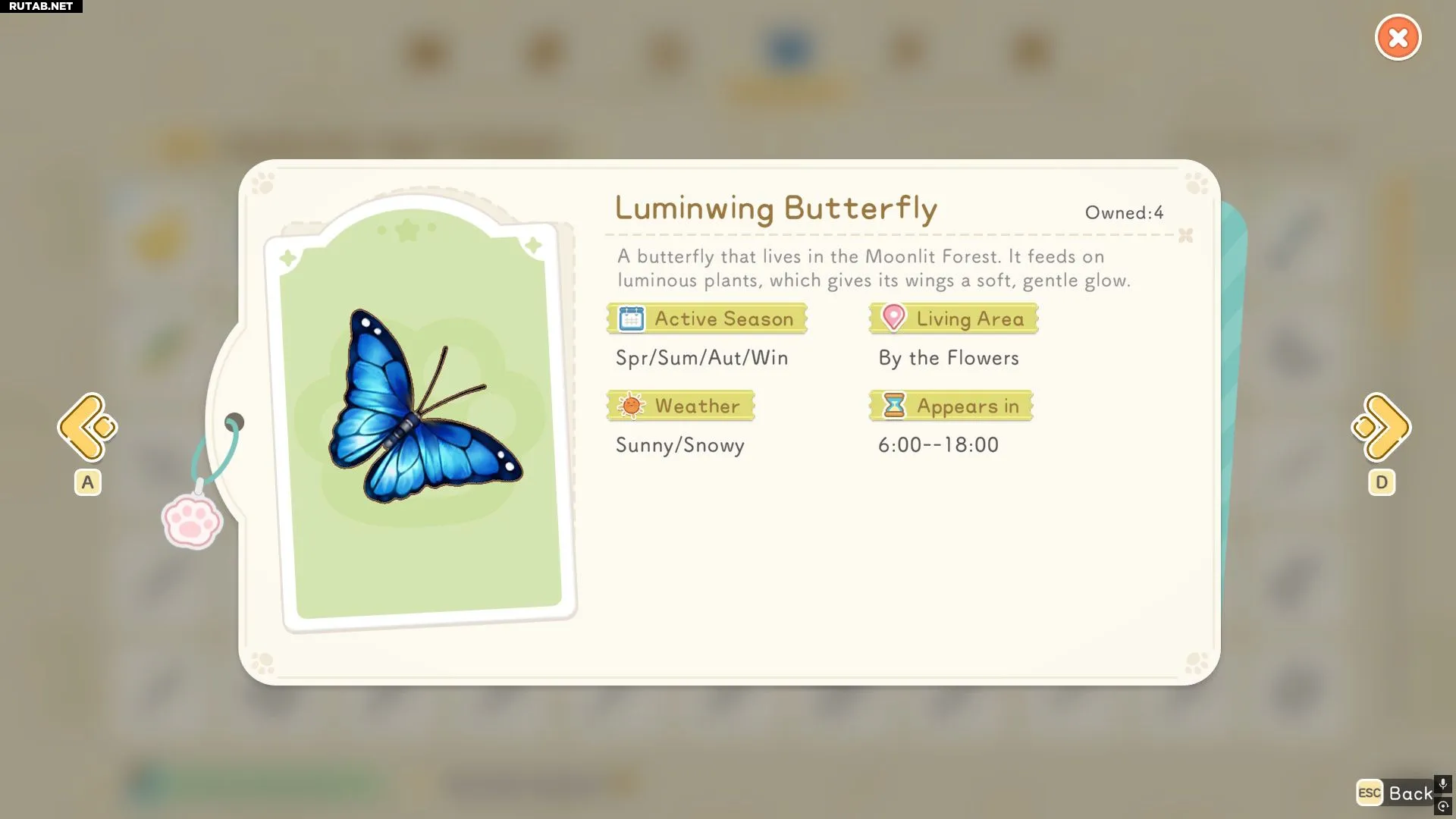 Светлячковая бабочка — один из многих видов насекомых, которых можно поймать сачком в Starsand Island. Эти бабочки имеют особое значение, так как для продвижения вглубь Лунного леса вам понадобится поймать определённое их количество.