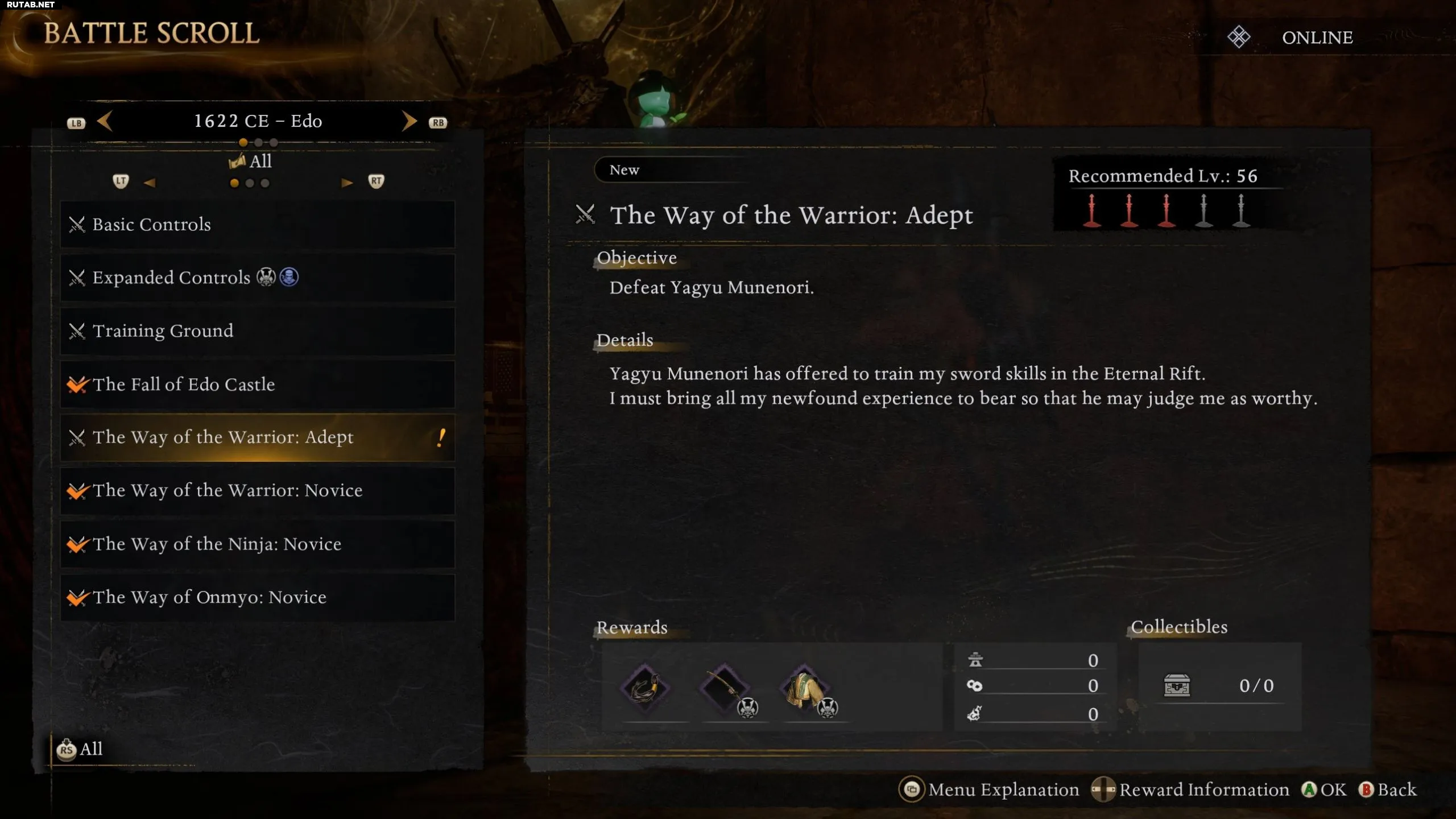 «Путь воина: Адепт» — это второй квест, который открывается после того, как игроки достигнут эпохи Хэйан, победив босса периода Сражающихся царств, Такэду Сингэна. В этом квесте Такэтиё предстоит спарринг с самим Ягю Мунэнори.