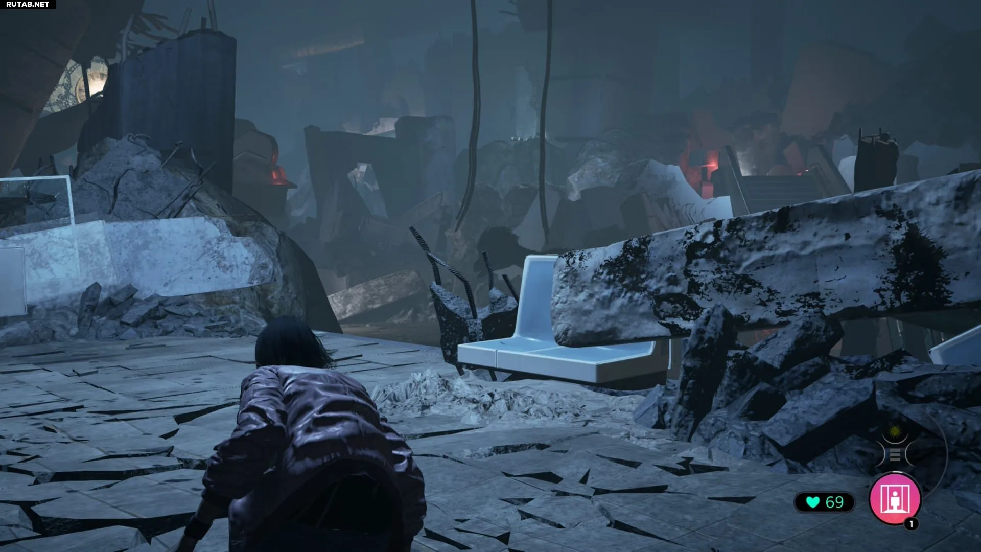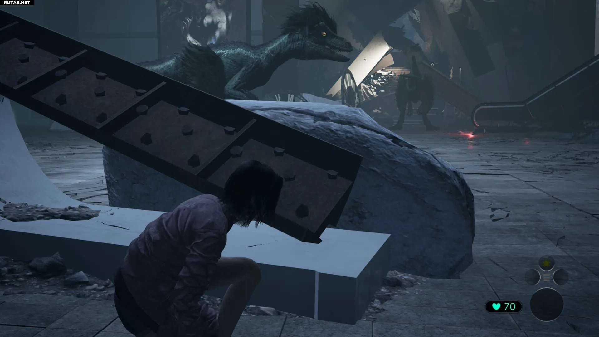 Дождитесь момента, когда гоблин в центре комнаты уйдёт вправо, а второй будет находиться у выхода. Используйте эту возможность, чтобы проползти под завалом слева. Это позволит обойти комнату по кругу и приблизиться ко второму эскалатору, чтобы отвлечь гоблина у выхода. Когда патрулирующий гоблин окажется максимально далеко от вас, бегите к выходу, чтобы завершить эпизод.