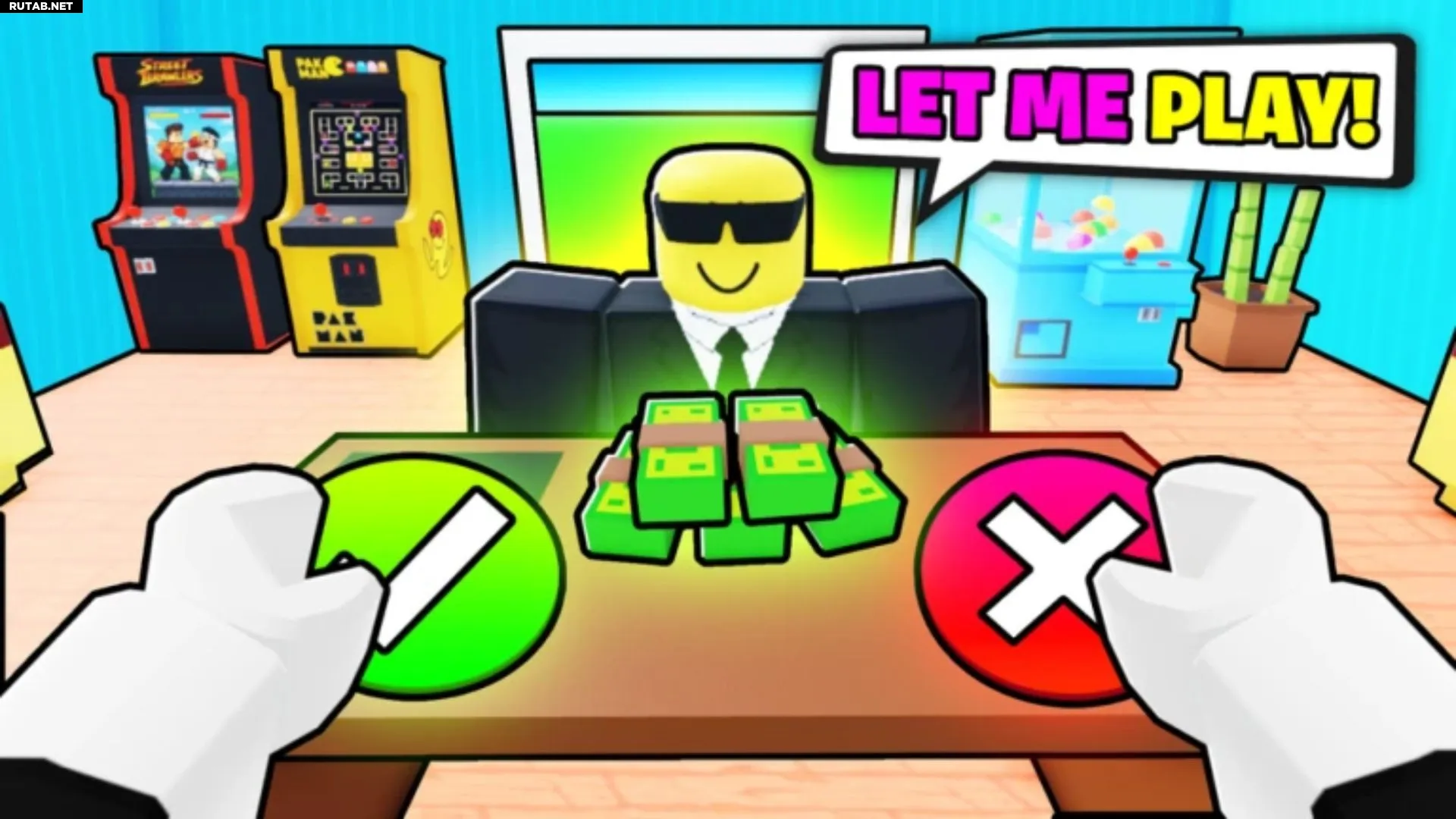 - Запустите игру Build an Arcade в Roblox.