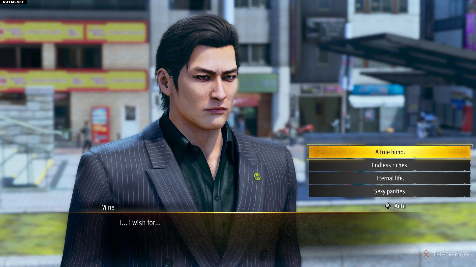 Таким образом, лучший вариант — попросить «Сексуальные трусики». Их можно продать в ломбарде «Эбису» за 15 000 000 иен, что больше, чем прямая просьба о богатстве. На эти деньги вы также легко сможете купить все необходимые «Стаминан X».