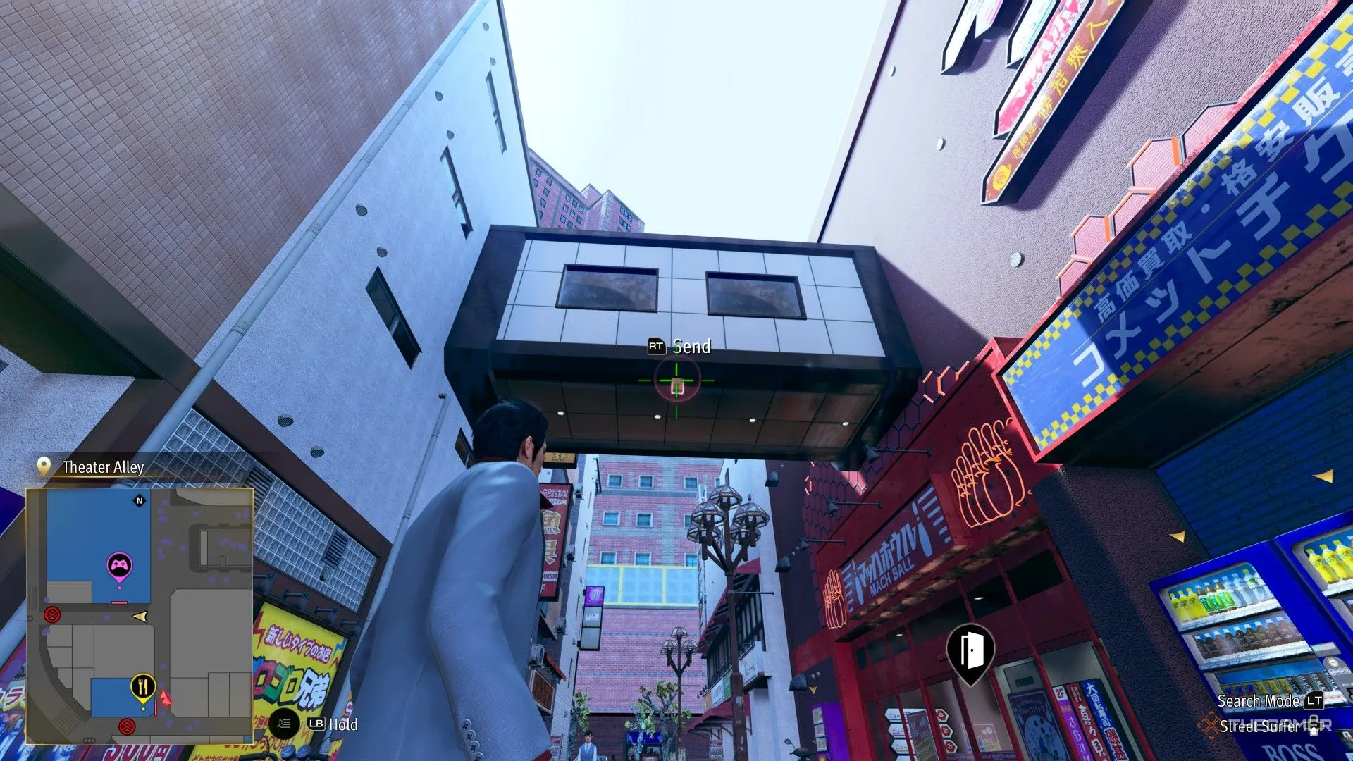 В переулке, ведущем от Ист Тайхэй-бульвара к району Чемпион. Дойдя до поворота на восток (к игроку в сёги), остановитесь и посмотрите вверх.