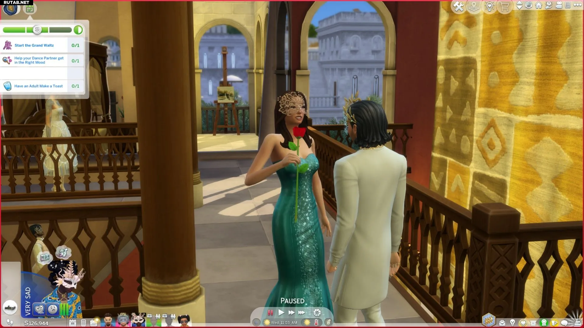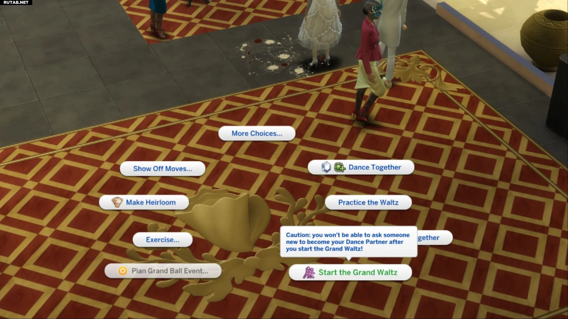 Поиск партнёра для Большого Вальса — ключевой момент. Чтобы пригласить сима для повышения социального статуса, приведите его в «Уверенное» настроение. Для романтического партнёра нужно «Игривое» настроение. Если вы ищете партнёра для дружбы, просто убедитесь, что вы в хороших отношениях. Правильное настроение повышает шансы на успешный танец.