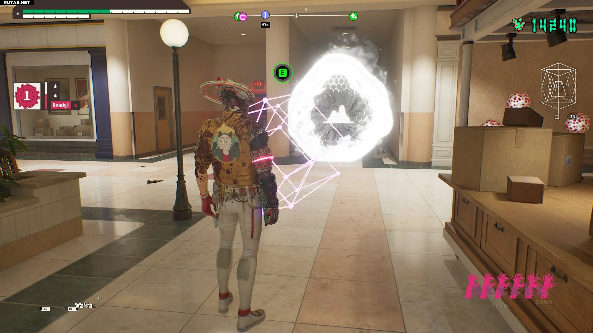 Вам предстоит найти четыре генератора, прежде чем вы сможете перейти к следующей части уровня. Первый генератор находится прямо перед вами в начале миссии. Уничтожьте всех Гнилей вокруг него и затем запустите его. Гнили будут появляться, пока вы возитесь с генератором — вы можете прервать процесс, разобраться с ними и затем возобновить запуск. Второй генератор находится наверху эскалаторов, на втором этаже. Вам нужно будет открыть ворота в магазин, где он расположен, взаимодействуя с ними и зажимая соответствующую кнопку. Внутри вы встретите первого врага типа Толстяк — у него есть слабое место на задней части шеи, попадание по которому наносит огромный урон. Внутри также будут стреляющие Гнили — лучше разделаться с ними, прежде чем возиться с генератором. От предыдущего генератора пройдите по центру торгового зала на восточную сторону (ориентируйтесь по карте) и уничтожьте Гнилей, которые там находятся. Здесь вы впервые встретите Геккона — четвероногого врага со слабым местом на спине.Чтобы добраться до генератора внутри огороженной зоны на первом этаже, используйте выступ, нависающий над ней.