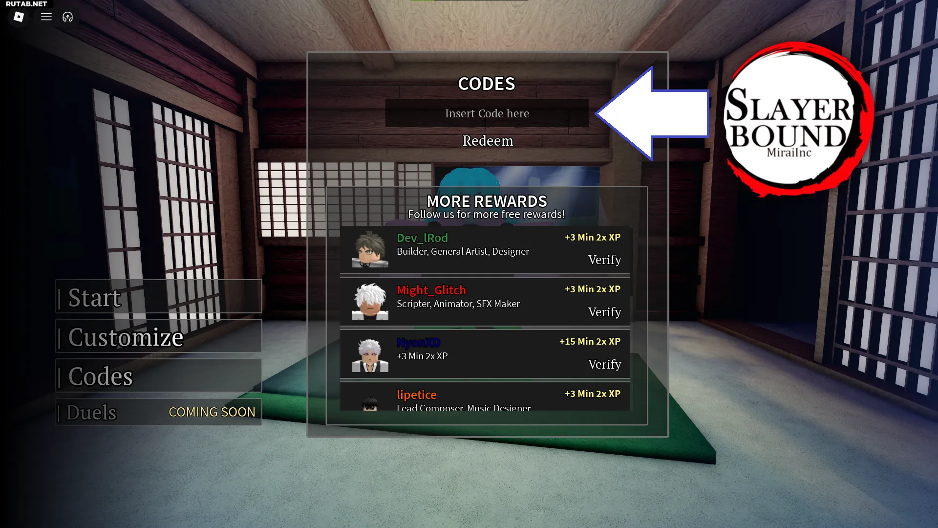 - Запустите игру Slayerbound в Roblox.