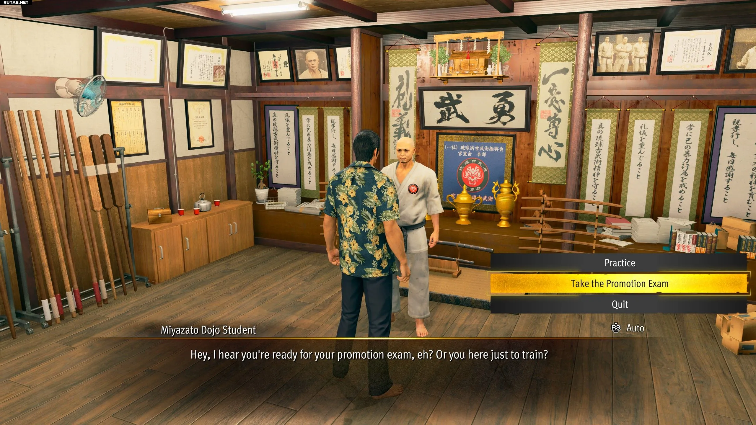 Стили Миядзато разблокируются путем сдачи экзаменов на повышение в додзё в баре «Чура», расположенном на улице Хацумати. Игроки могут открывать новые экзамены, зарабатывая достаточно очков тренировки, которые, в свою очередь, получаются за выполнение практических боев, начав разговор с учеником додзё Миядзато в баре «Чура».