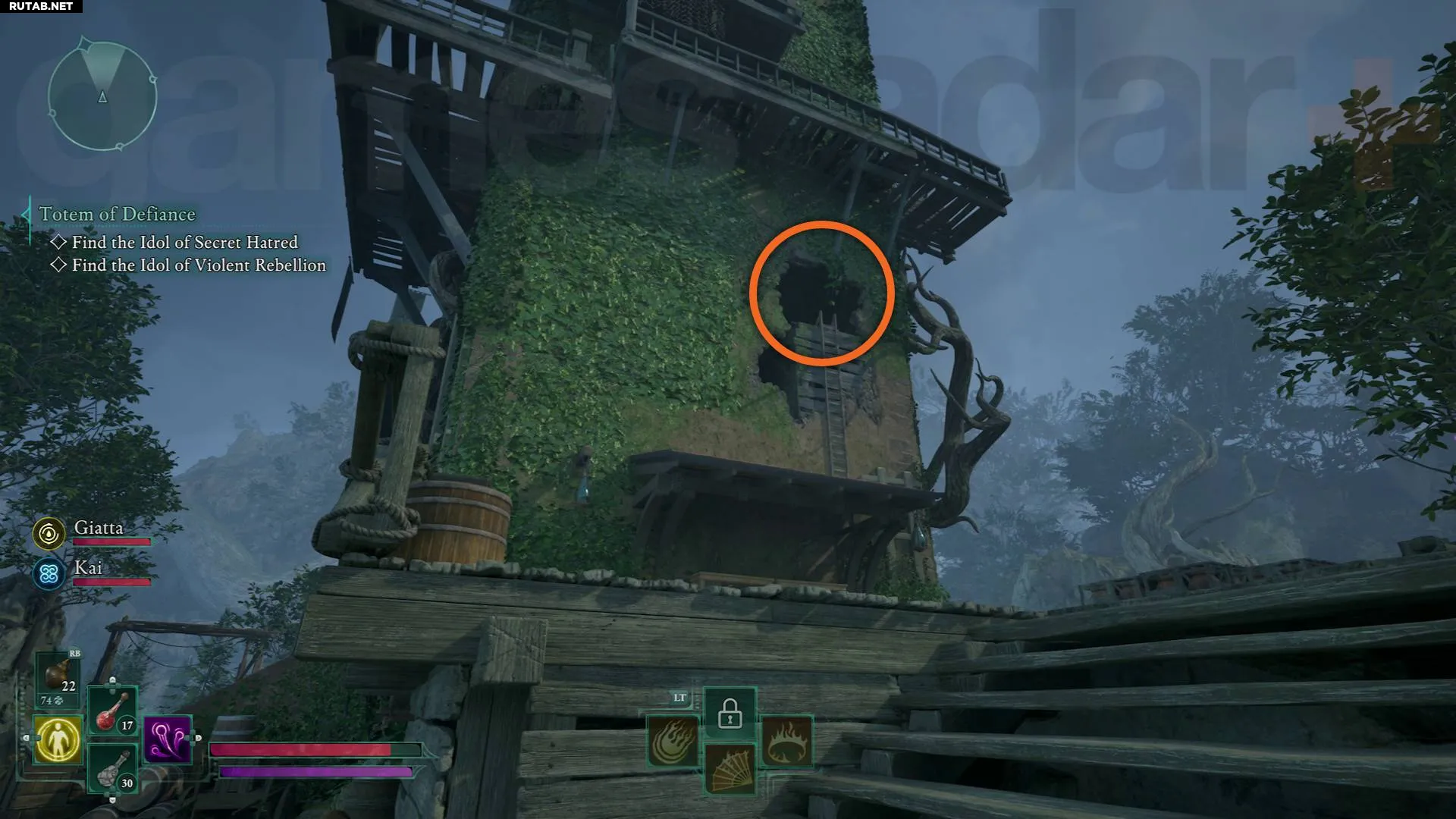 Идол Жестокого Бунта для Тотема Непокорства находится в башне Штаба Рейнджеров у восточного края карты Изумрудной Лестницы. Начните с южной стороны башни: поднимитесь по лестнице, ведущей к дыре в стене. Продолжайте карабкаться вверх, и в конце концов вы окажетесь на самом верху, где идол воткнут в деревянный ящик.