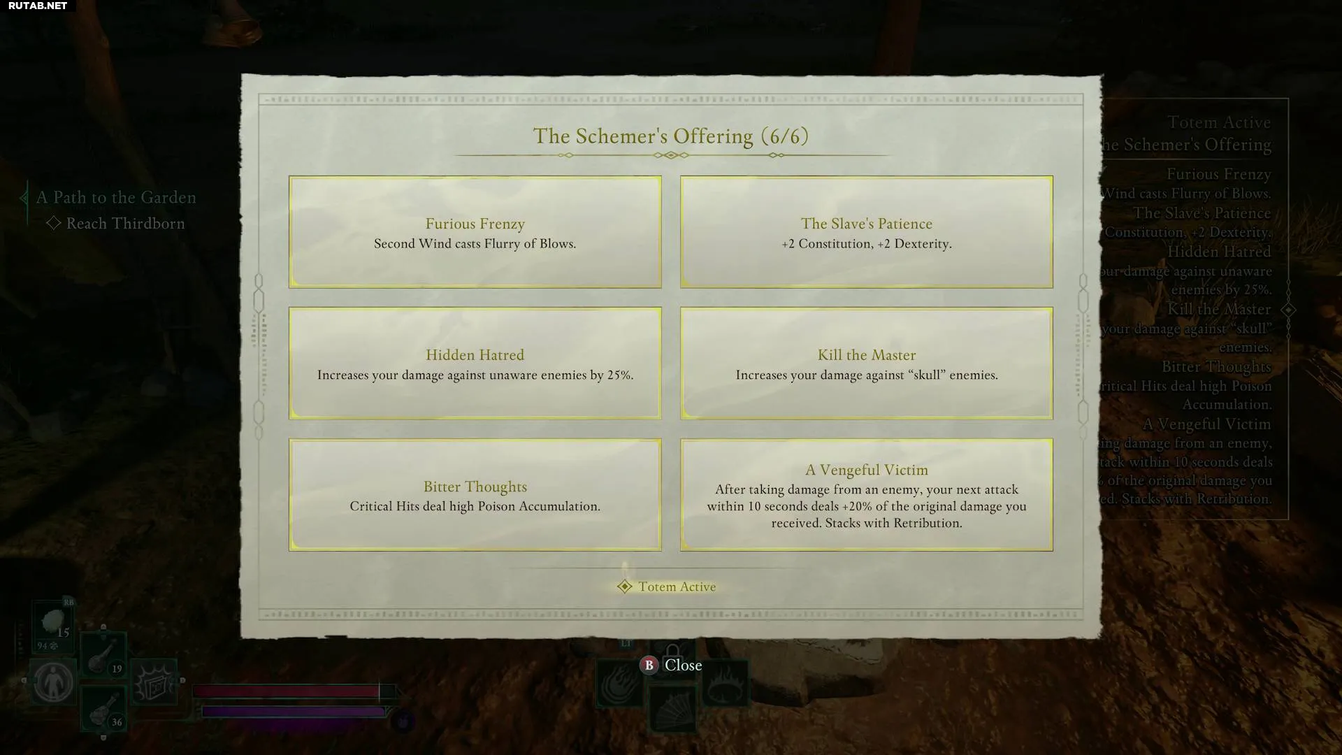 Помимо основы, каждый фрагмент Тотема Непокорства даёт определённое улучшение: боевых способностей, характеристик персонажа или чего-то ещё. Если вы хотите усилить навыки рейнджера, скрытность и урон ядом, то это отличный тотем для активации.