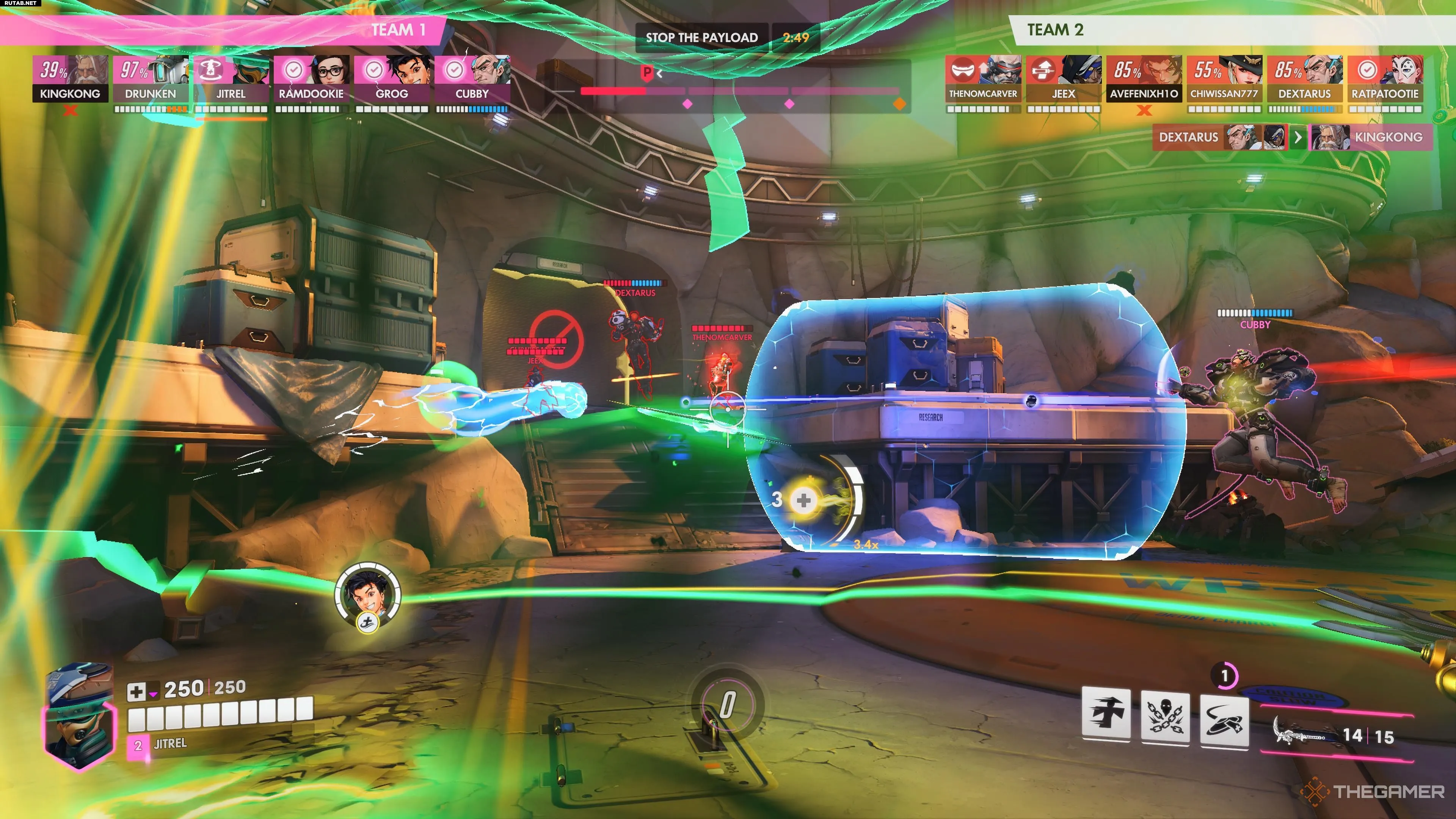 Вашу ультимативную способность можно использовать как в нападении, так и в защите. Если нужно продвинуться для захвата точки, поставьте её впереди, чтобы блокировать снаряды, пока команда заходит внутрь.