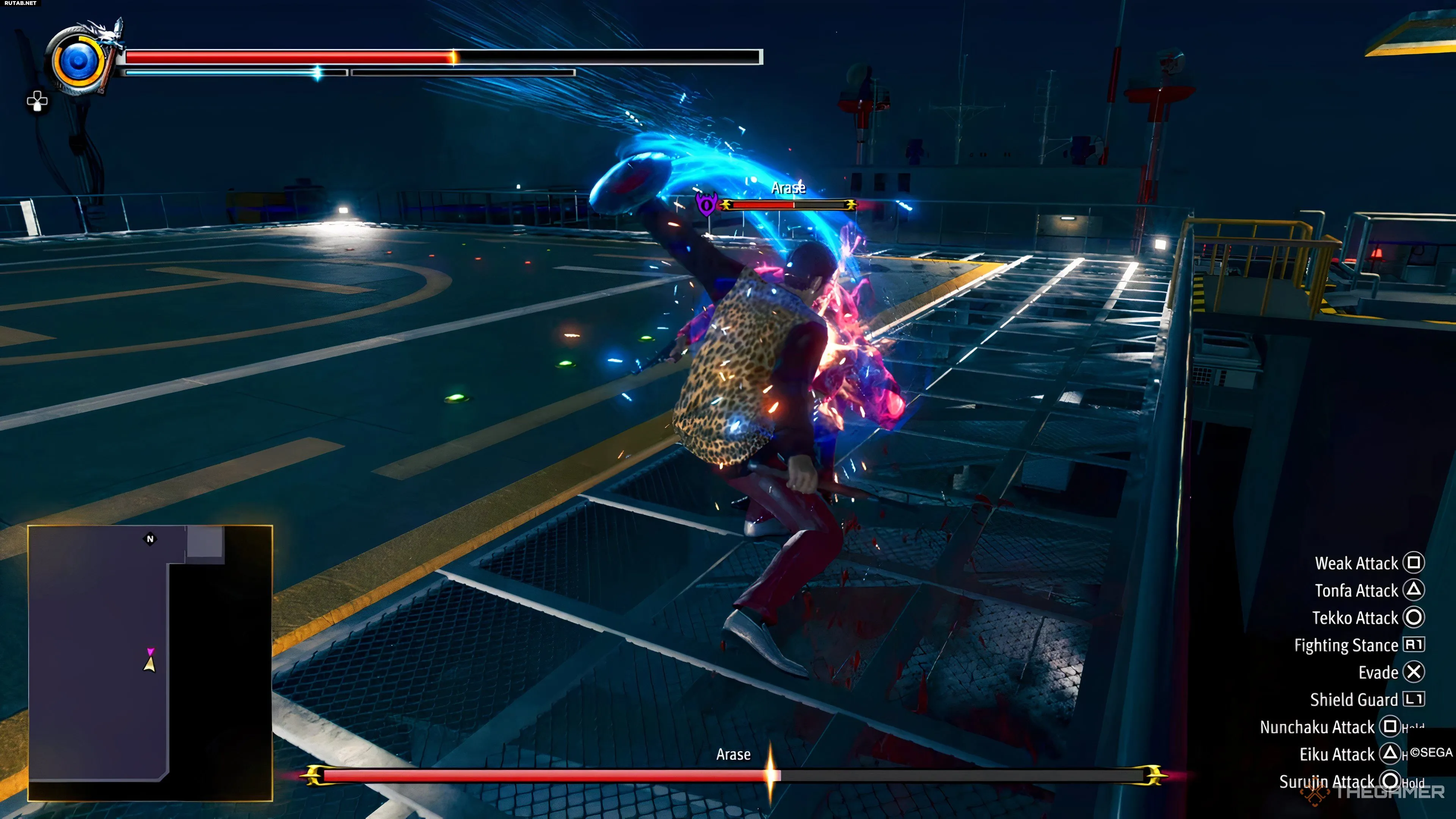 Кадзуто Арасэ — довольно сложный босс из-за своего большого запаса здоровья и пинков, которые часто сбивают вас с ног. Но с помощью стиля Рюкю вы сможете блокировать и парировать его выстрелы, если открыли соответствующие способности.