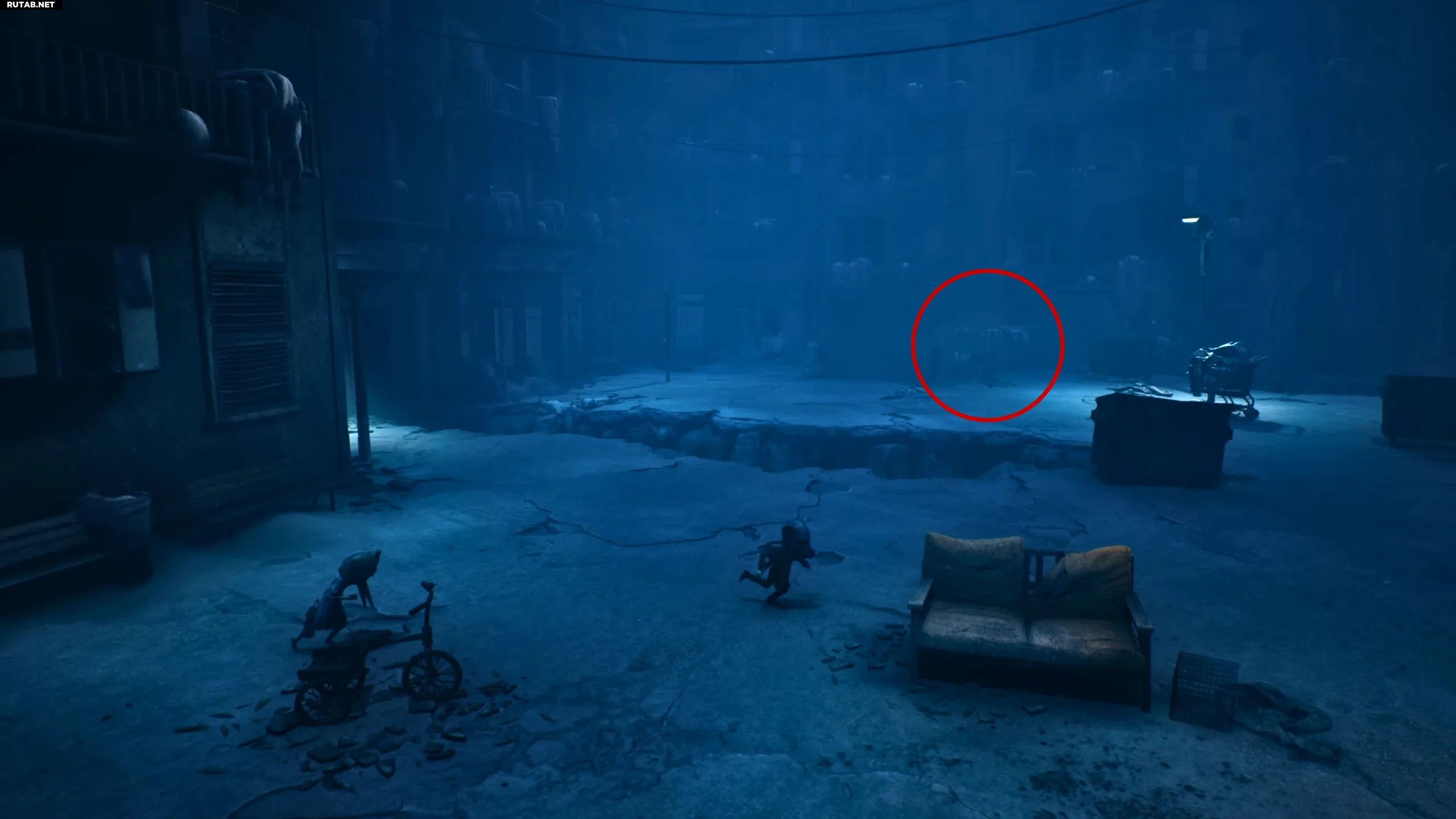 Окно приведет вас в комнату со стиральными машинами, где «Нюхач» что-то утюжит. Вам нужно присесть и двигаться тихо, чтобы не привлечь его внимание. Если «Нюхач» все же заметит вас, просто спрячьтесь в одной из выключенных стиральных машин. Для дальнейшего продвижения используйте вентиляционное отверстие рядом с дверью в левой части комнаты.
