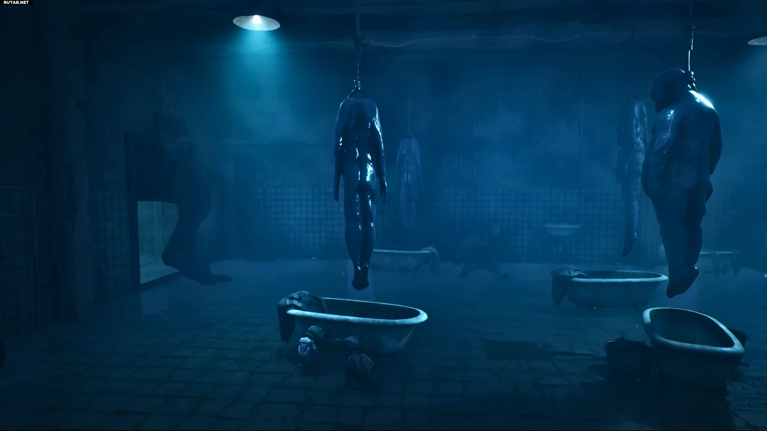 Вы окажетесь в ванной комнате с несколькими шкурами, висящими над ваннами. Здесь нужно прятаться от «Нюхача», укрываясь за ваннами. Продержитесь достаточно долго, чтобы сбить его со следа, после чего он уйдет в следующую комнату, удобно открыв для вас дверь.
