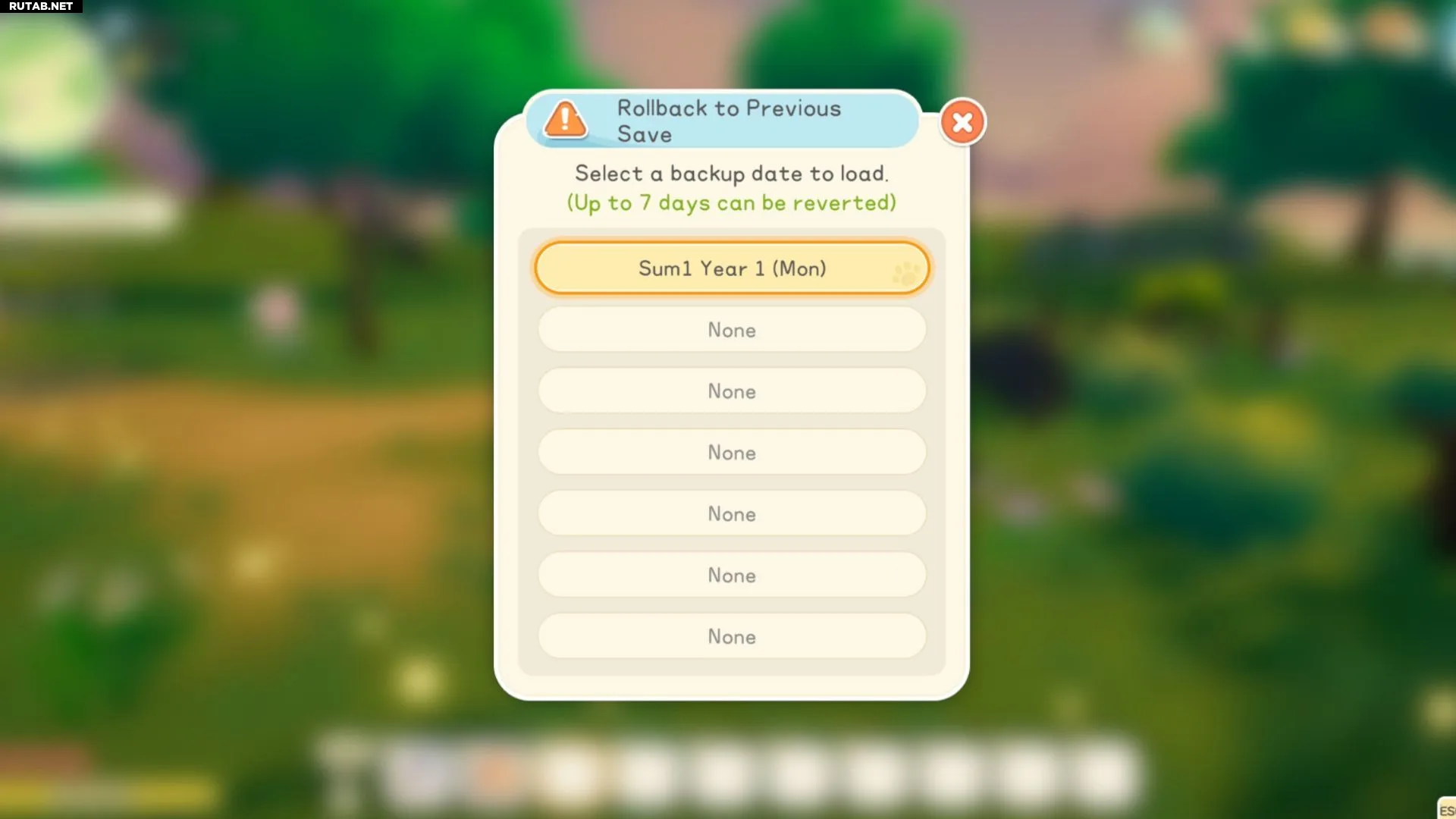 - Максимальный откат возможен на семь дней назад. Все сохранения, сделанные после выбранного дня, будут удалены.
