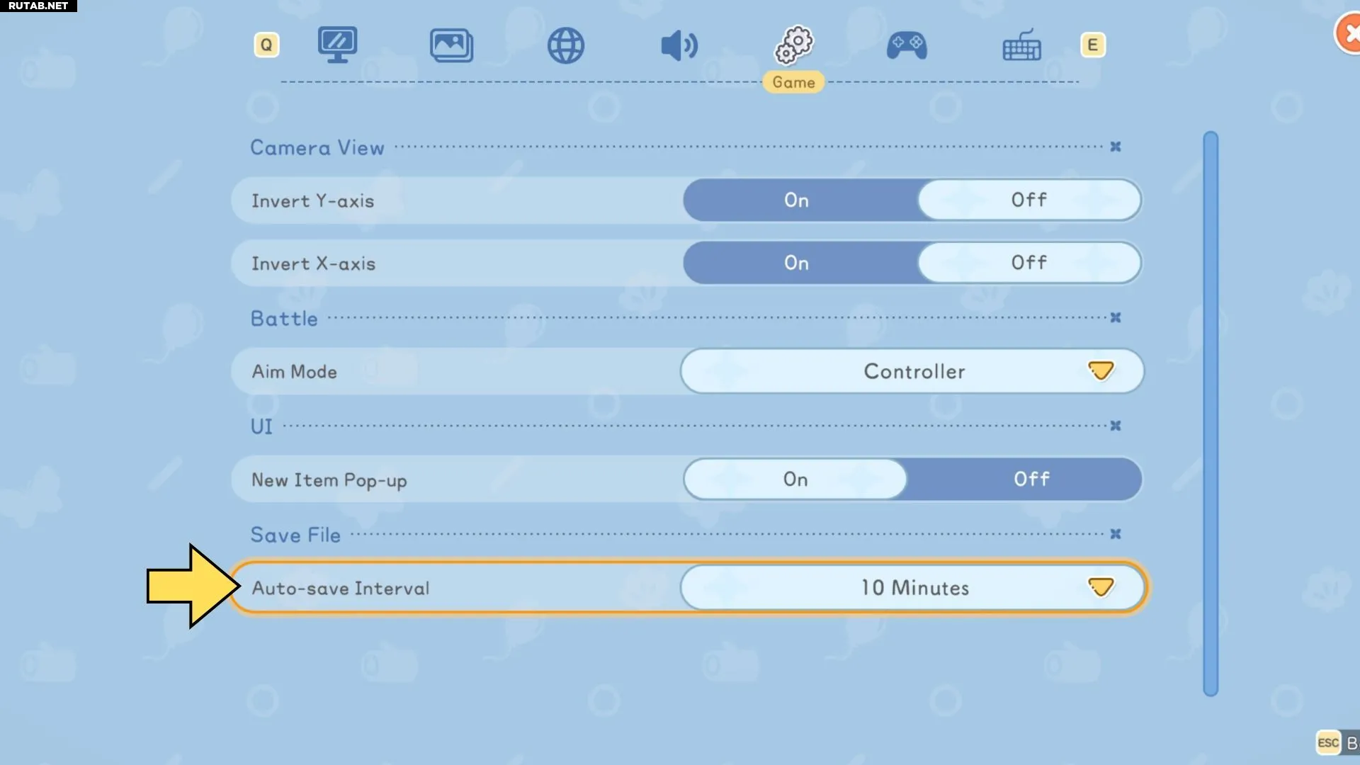 В самом низу этой вкладки находится настройка «Интервал автосохранения». Нажмите на желтую стрелку справа от этой строки, чтобы выбрать, как часто игра будет сохраняться автоматически.