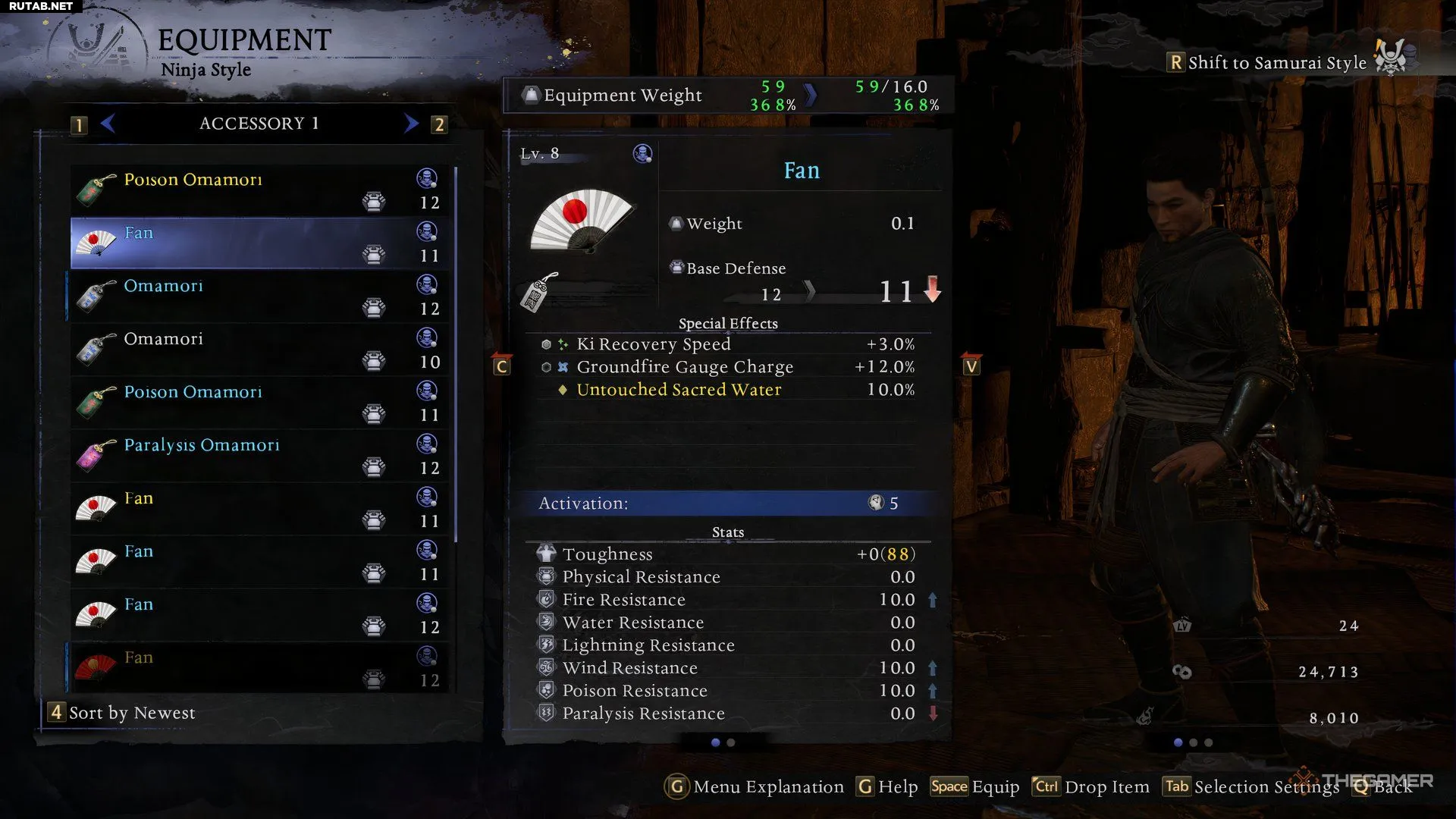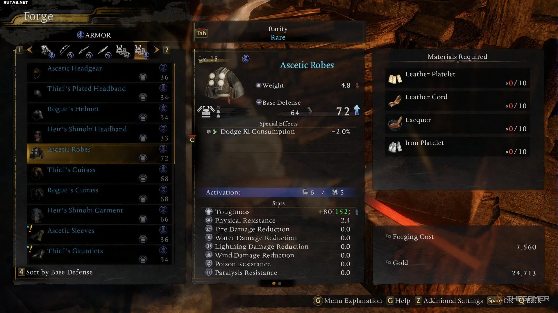 Такой баланс необходим, потому что уклонения становятся ключевым способом избежать урона, так как блоки и парирования будут менее эффективны. Поэтому, если вам придётся пожертвовать несколькими пунктами защиты ради эффекта Снижение расхода Ки при уклонении (что, как следует из названия, уменьшает затраты Ки на каждое уклонение), это того стоит.