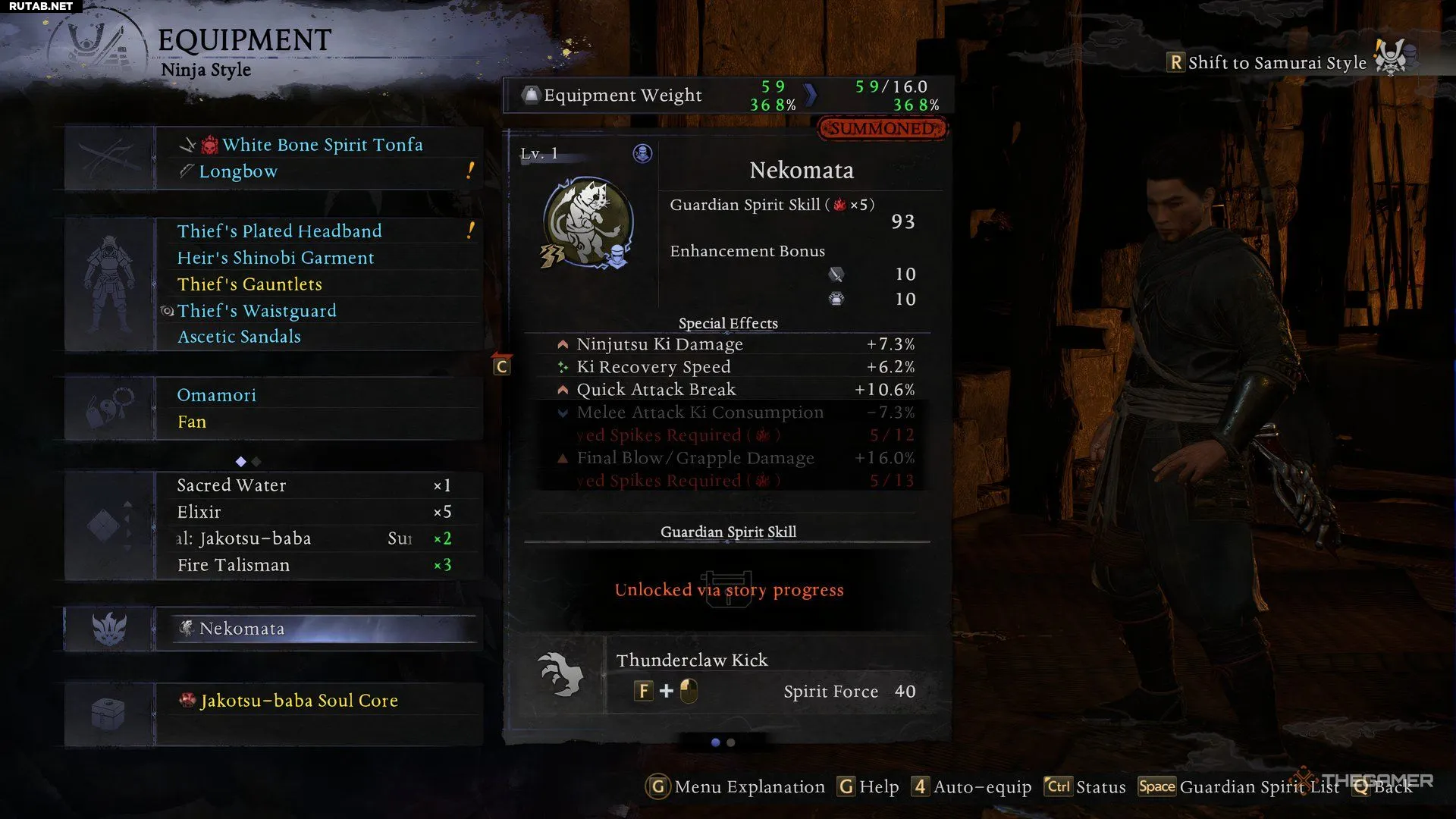Благодаря бонусам к урону по Ки от ниндзюцу, скорости восстановления Ки, пробиванию быстрых атак и снижению расхода Ки на атаки в ближнем бою, Некомата идеально подходит в качестве Духа-хранителя для сборки с тонфой в Nioh 3.