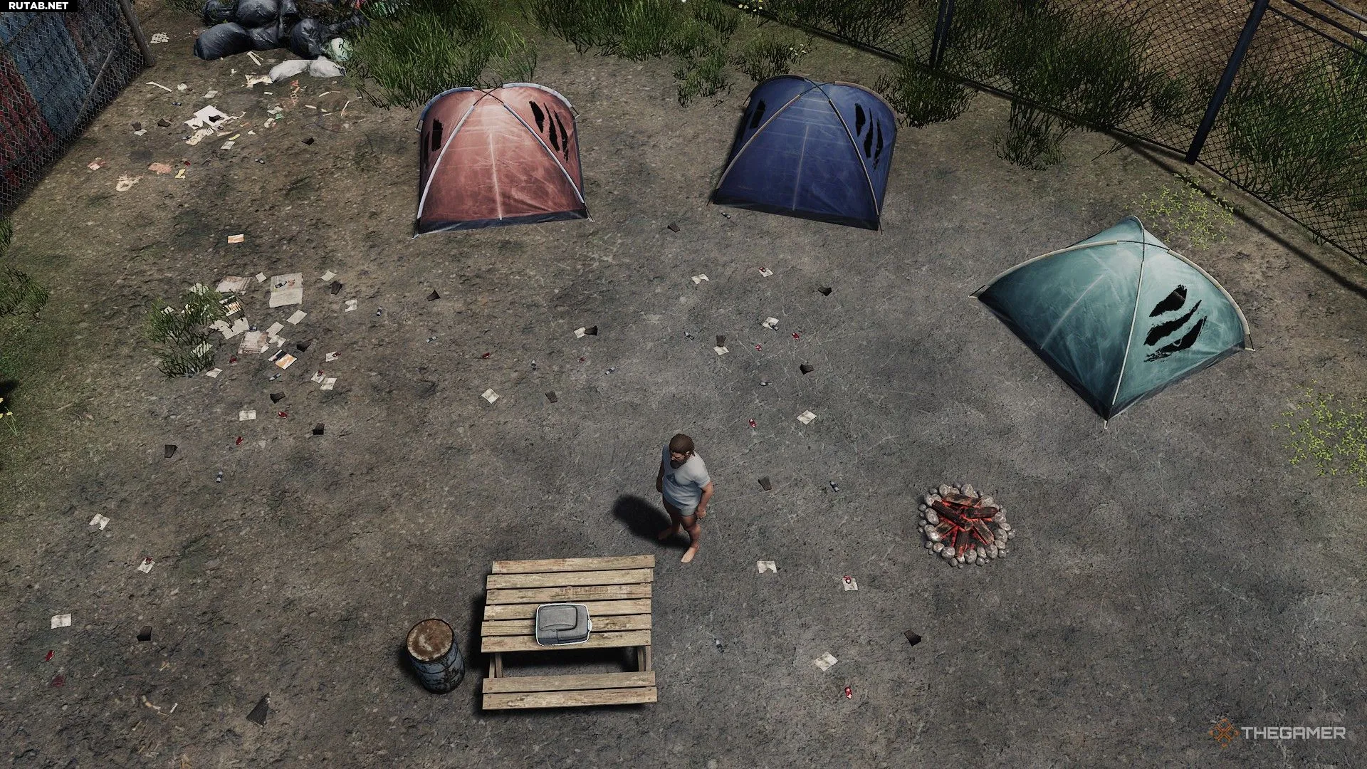 Золотая середина по сложности. Вы начнёте в практически пустом лагере, где чувствуется острая нехватка ресурсов. Однако у вас уже будут импровизированные стены и общая структура, которую можно развивать в полноценную базу. Минус в том, что, выйдя на главную дорогу, вы сразу же увидите зомби. Сложно, но не невозможно.