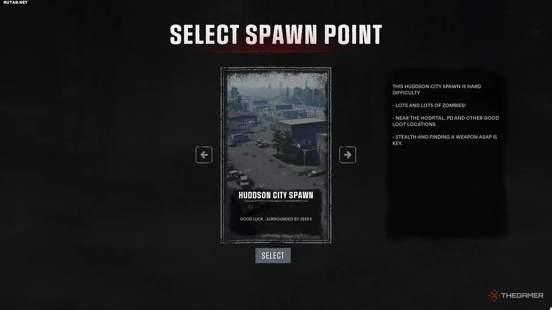 Вариант для хардкорных игроков. Это единственная локация, где с первых секунд вас будет окружать огромное количество зомби. Первая встреча с нежитью может произойти буквально через пару секунд после появления. Если вас сразу же убьют — не страшно, просто начните заново, ничего не теряя. С небольшим везением вы сможете оторваться от толпы и начать стратегически обустраиваться, обыскивая здания.