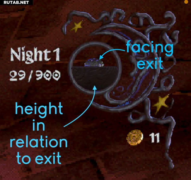 Смотря на компас, поворачивайте камеру, пока все указатели на нём не исчезнут, и вы не увидите только центральный шар, покрытый светящимися линиями. Теперь вы смотрите прямо на выход. Интерфейс также показывает, находитесь ли вы выше или ниже выхода по вертикали.