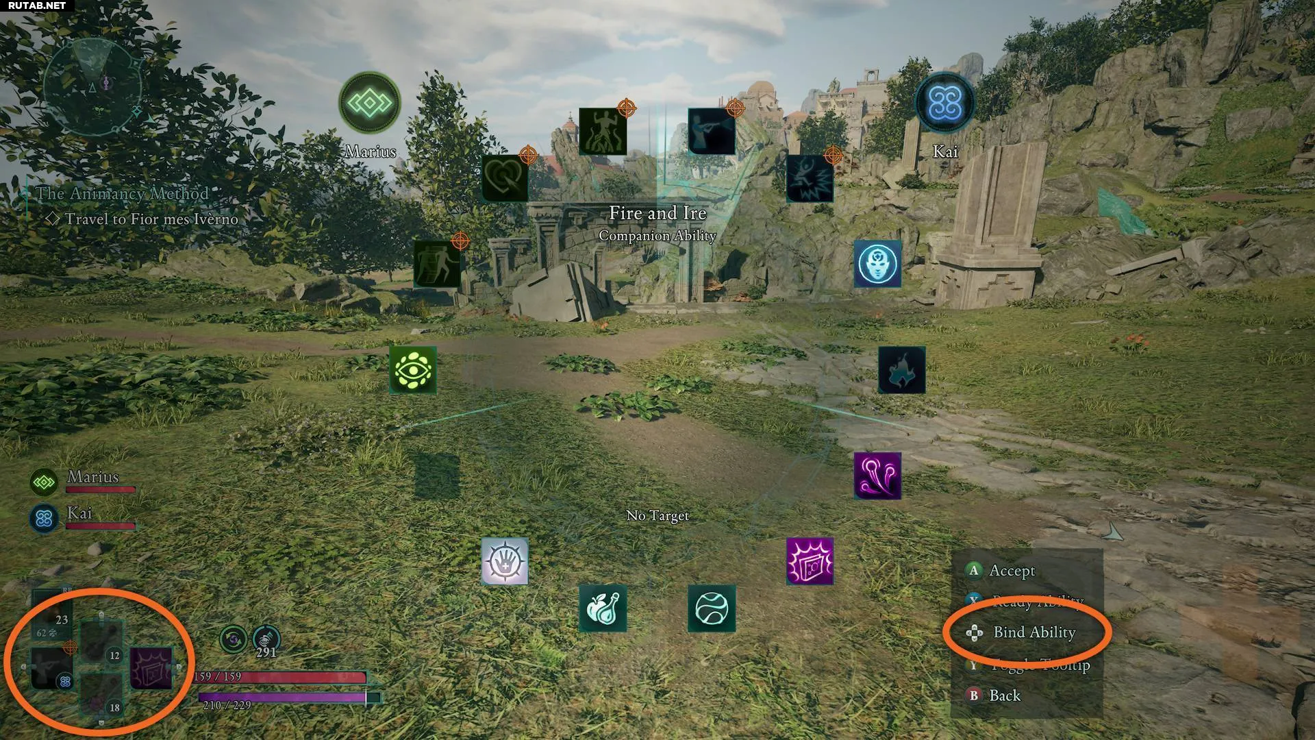 Быстрые слоты, привязанные к D-Pad, позволяют мгновенно использовать навык, способность спутника или зелье, не открывая радиальное меню. Возможность быстро применить лучшие способности в критической ситуации — огромное подспорье для поддержания темпа боя, поэтому назначайте их с умом. Ограниченное количество быстрых слотов всё равно заставит вас часто пользоваться радиальным меню действий, но я рекомендую назначить туда зелья здоровья для быстрого восстановления, а также ваши собственные или способности спутников, наиболее полезные в бою — хорошими вариантами будут прыжок Кая и лозы Мариуса!