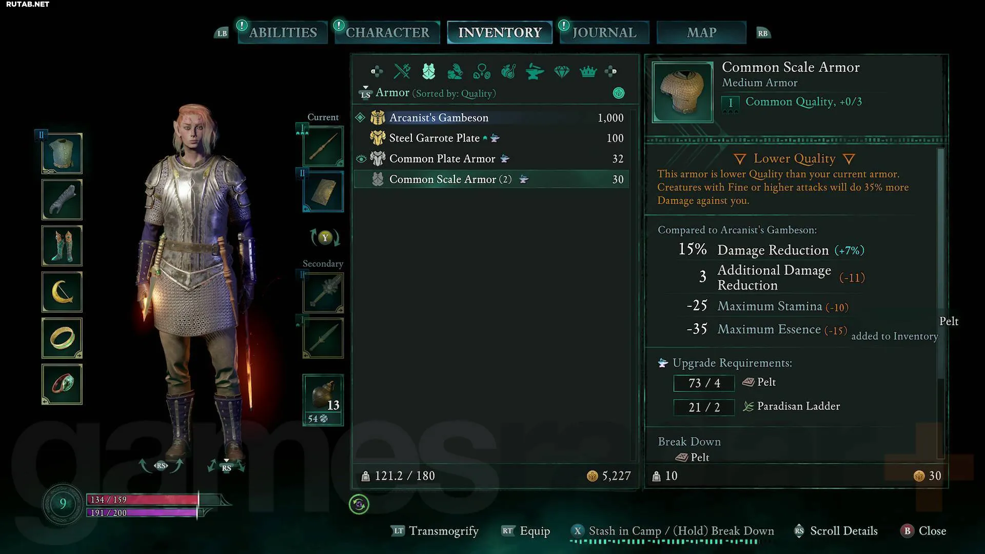 Вы можете разбирать снаряжение в инвентаре, чтобы получить немного материалов для улучшений, и так стоит поступать с любыми предметами, которые вы не используете. Эти материалы нужны постоянно, чтобы улучшать оружие в Проклятых и повышать боевую мощь. Однако ботинки и перчатки, которые вам не нужны, лучше продавать торговцам за деньги, которые затем можно потратить у тех же торговцев на материалы для улучшений.