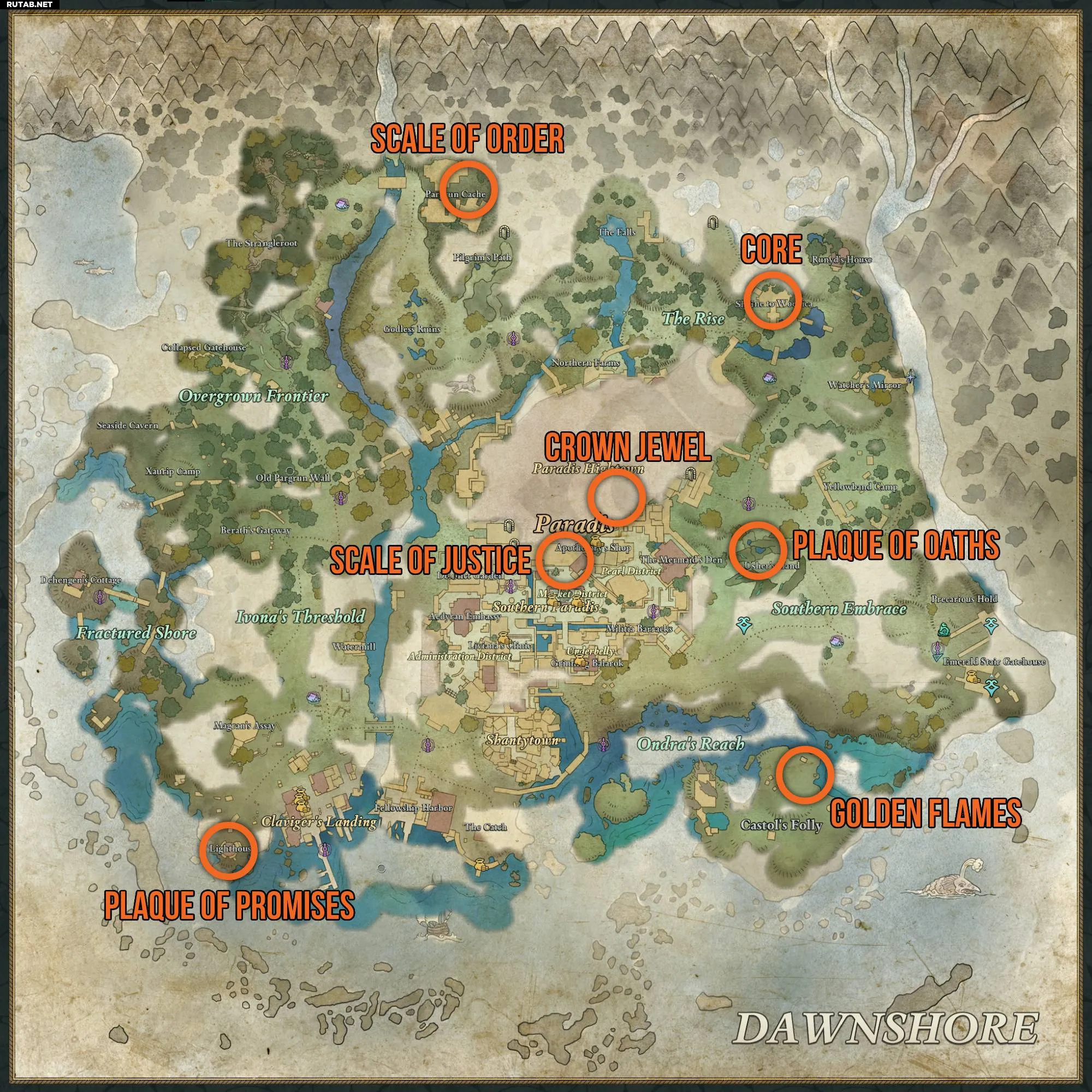 Местоположения частей Тотема Законного Правления в Avowed