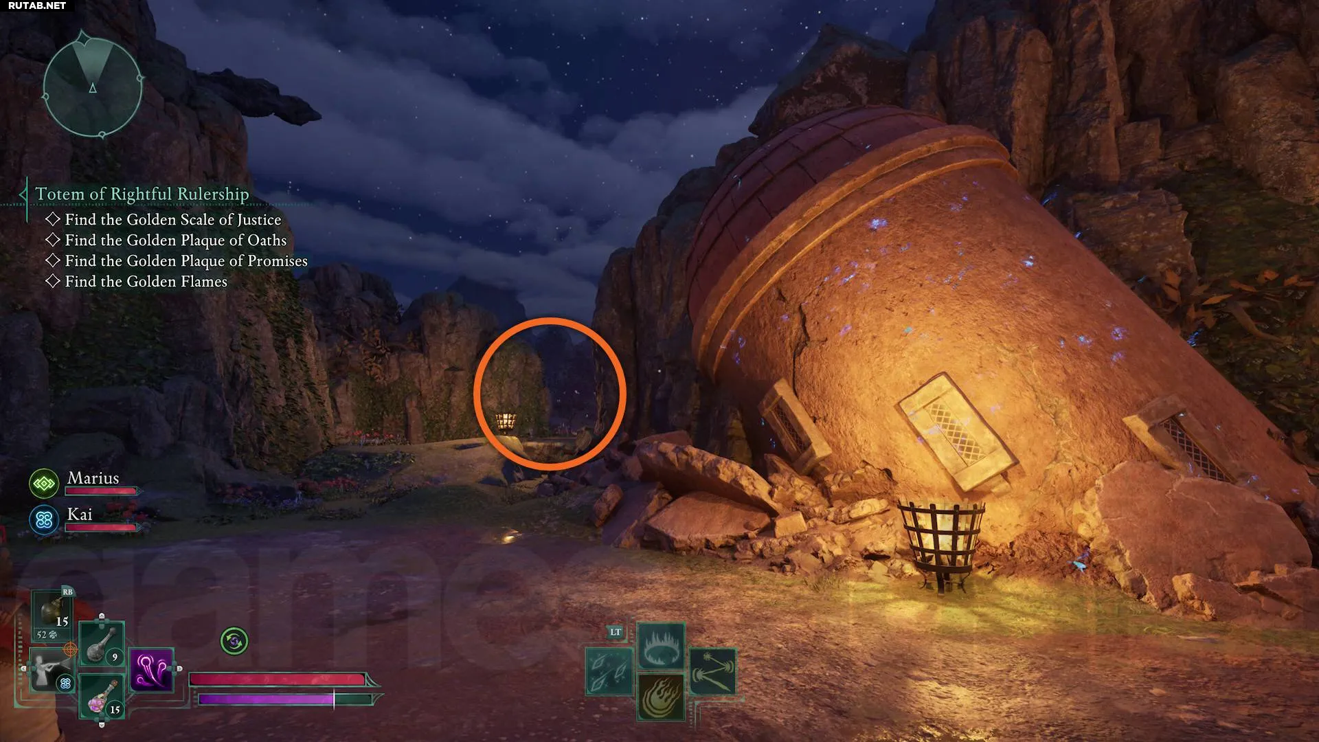 Эту часть тотема удобнее всего забрать во время выполнения побочного квеста «Драгоценный Свет», если он у вас есть. Направляйтесь на Глупость Кастола — остров в юго-восточном углу карты Рассветного Берега — и следуйте по тропинкам, ведущим вверх по острову. В конце концов вы достигнете части разрушенной башни с костром перед ней. Слева от этой башни есть тропинка, на которую можно запрыгнуть; она огибает утёс и ведёт прямо к Золотому Пламени.