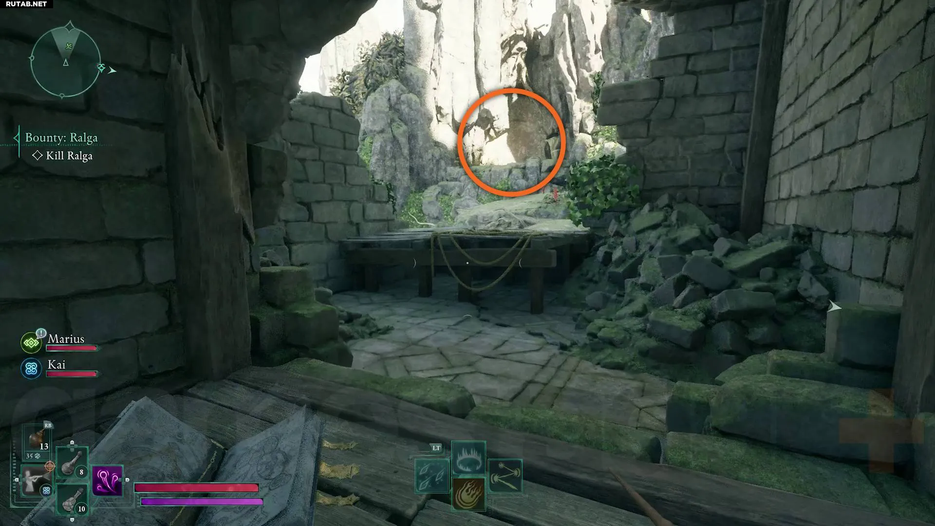 Отправляйтесь в Лагерь отряда в Заросшей Долине в северо-западном углу Рассветного Берега и двигайтесь на восток, перейдя мост у водопада. Следуйте по тропинке к разрушенной стене, возле которой стоят взрывоопасные бочки. Взорвите их, чтобы разрушить стену и попасть в Замок Паргрун.