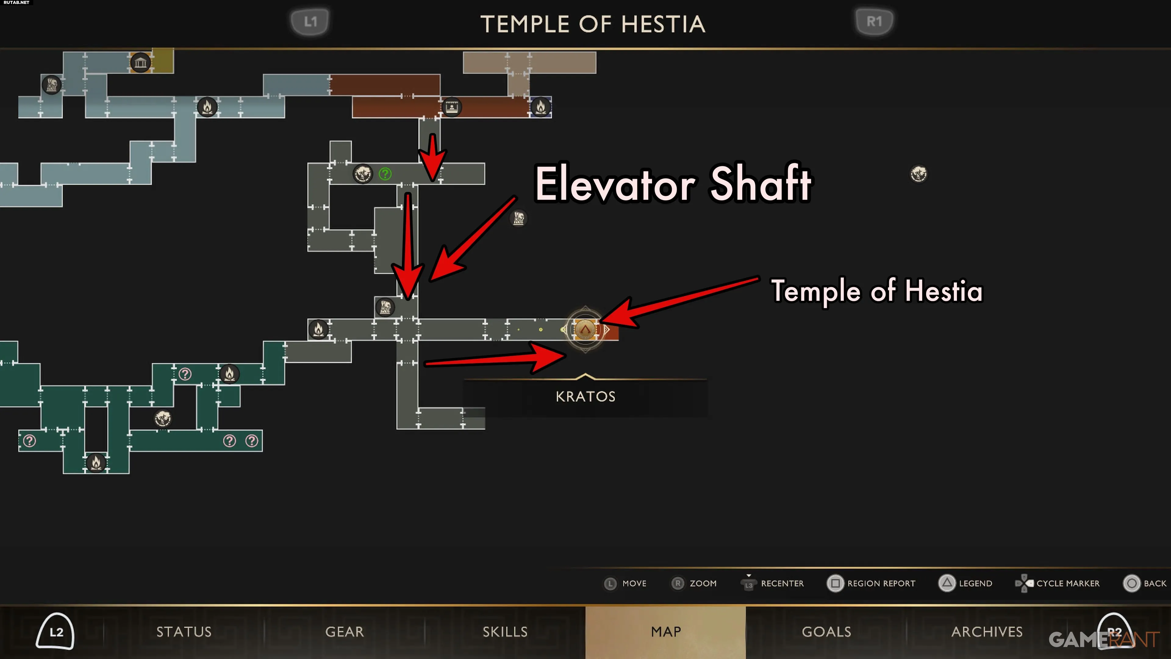 Попав в «Большую Цистерну», спускайтесь вниз, пока не достигнете длинного шахтного ствола с лифтом. Оказавшись на дне, двигайтесь на восток. Если идти прямо, вы упретесь в Храм Гестии.