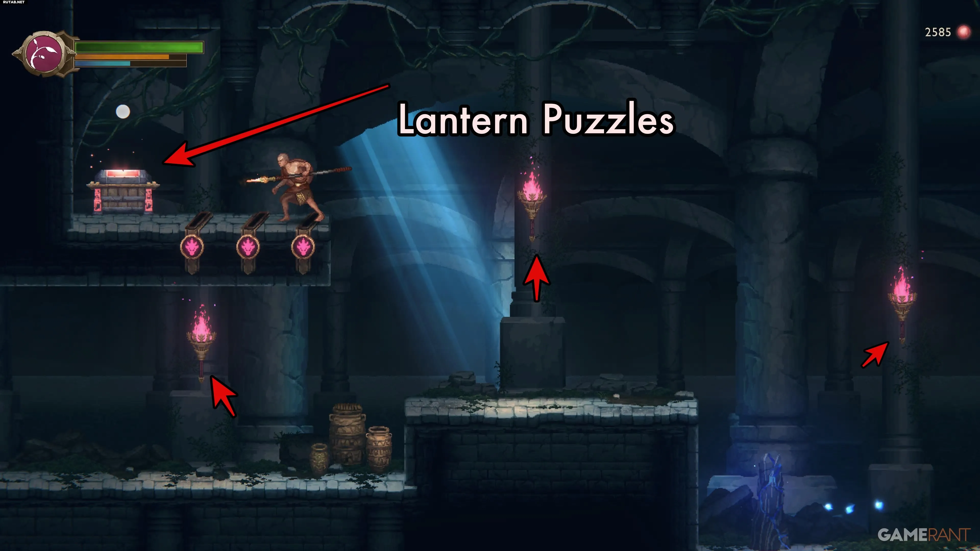 «Вечное Пламя» также может зажигать различные фонари и жаровни, разбросанные по миру игры. Некоторые из них необходимы для головоломок в заданиях, другие же ведут к сокровищам. Чтобы зажечь жаровню, просто прицельтесь, как при сжигании шипов, и выстрелите.