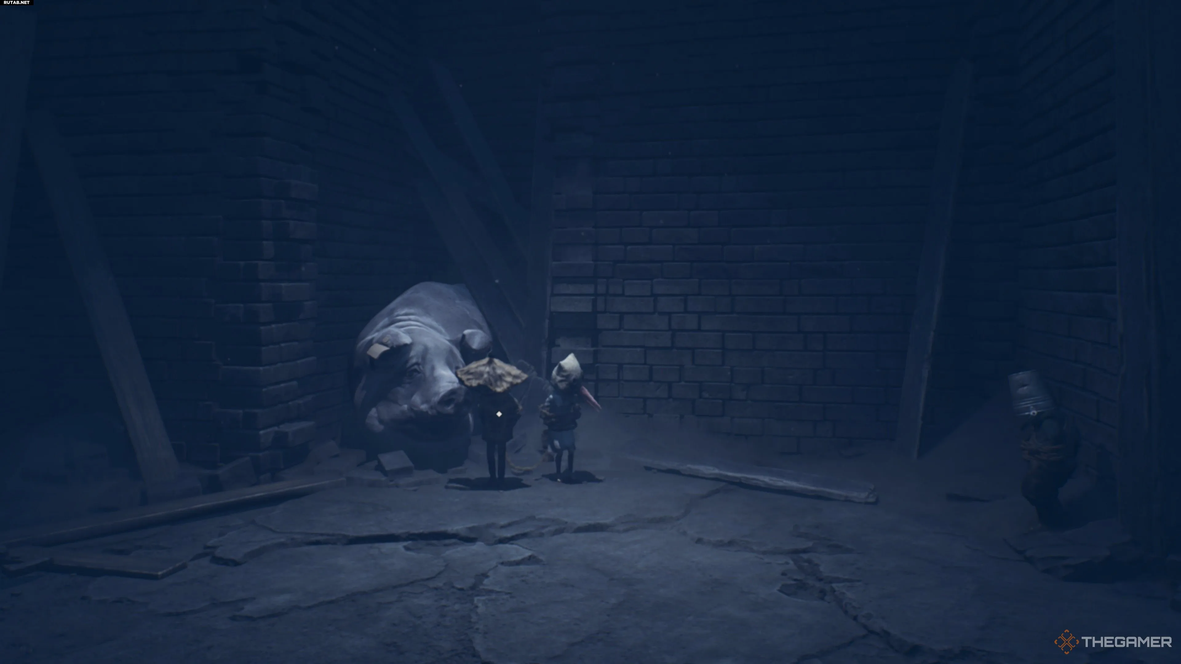 - Утешение твари — успокоить испуганную свинью. В четвёртой главе «Без приюта», когда вы найдёте друга с ведром на голове в конце часовой башни, мимо пробежит свинья. Следуйте за ней, чтобы найти путь, но остановитесь и взаимодействуйте с животным, чтобы утешить его, пока оно напугано.