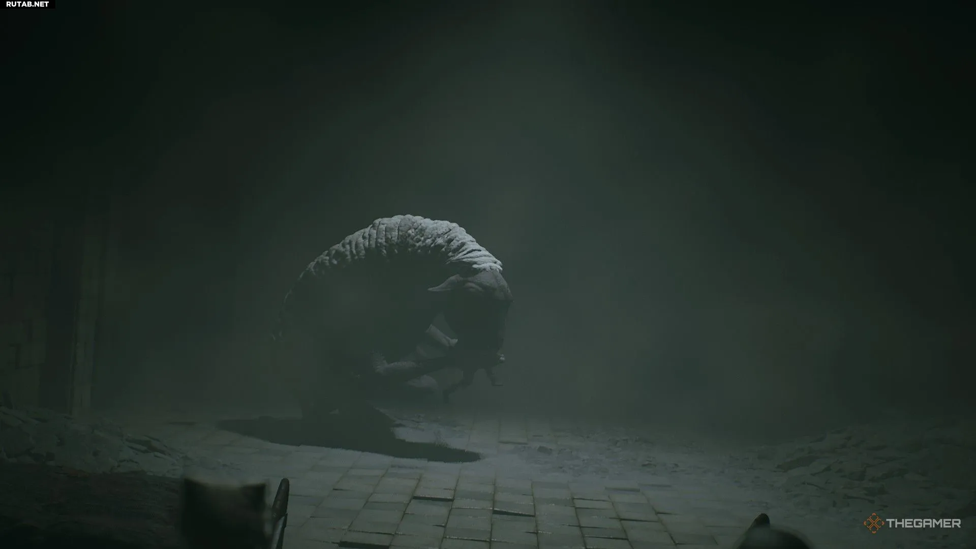 Оказавшись внутри, нырните в отверстие в стене в конце коридора, чтобы скрыться от стрелка, но вместо этого вы наткнётесь на овечьего монстра, который немедленно начинает преследовать вас по направлению к камере.