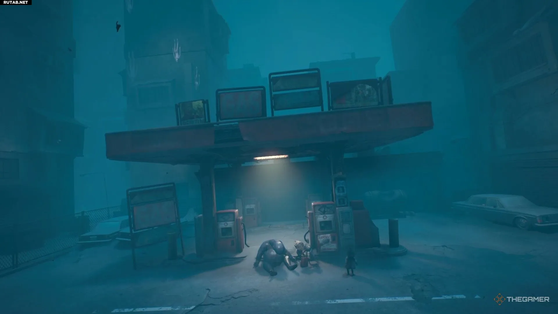 Это приведёт вас на заправочную станцию, что очень кстати, ведь у фургона с мороженым, на котором вы будете сбегать из лесного городка в Reanimal, закончился бензин после поездки Сниффера. Взаимодействуйте с канистрой, которую использует раздувшееся тело у колонок, и наблюдайте, как «кожаные костюмы» спускаются в эту зону, пока сироты наполняют её. Будьте готовы бежать, когда канистра наполнится.