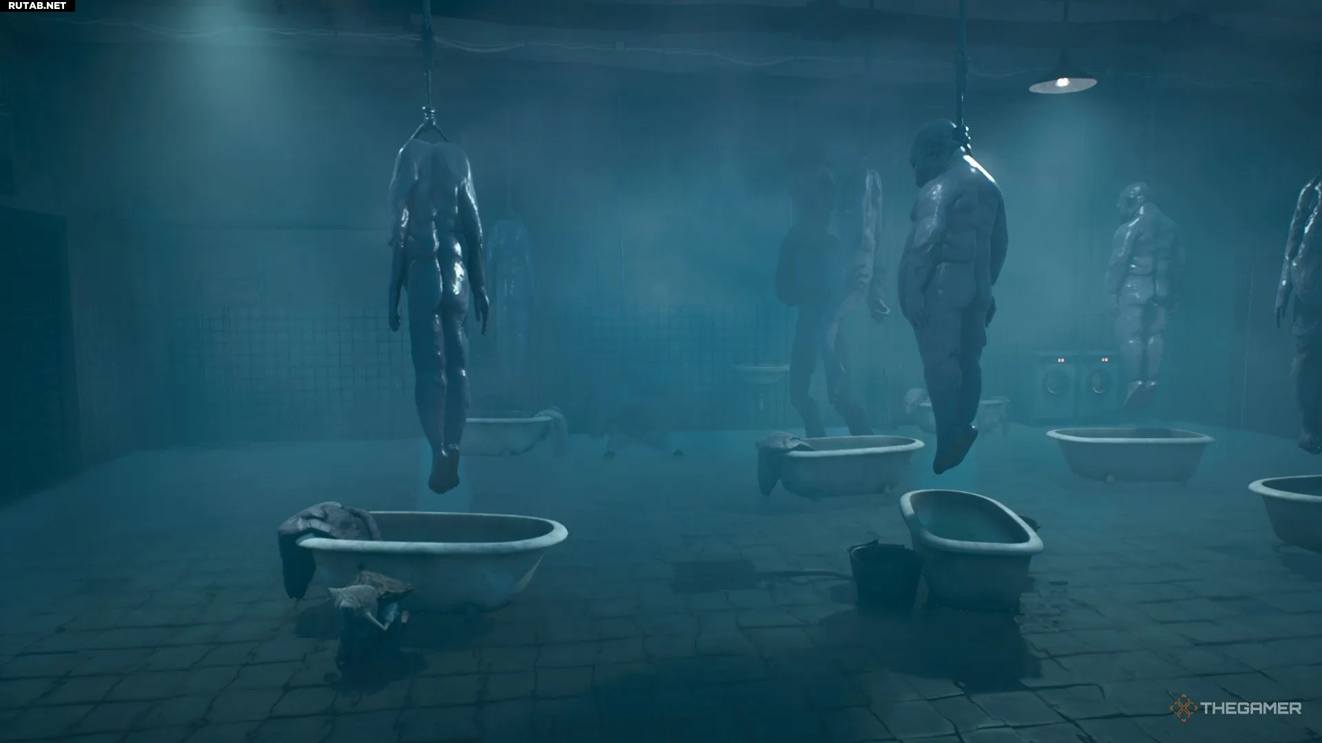 Впереди — комната с телами над ваннами. Вам нужно будет использовать ванны в качестве укрытия, когда Сниффер зайдёт в комнату. Как только вы войдёте, пригнитесь за ванной в заднем ряду, ближайшей к месту вашего входа, и оставайтесь там, пока Сниффер осматривает помещение. Вы можете продвинуться дальше, но он вернётся к своей схеме действий из первой главы на товарном дворе, двигаясь по заданному маршруту во время осмотра.