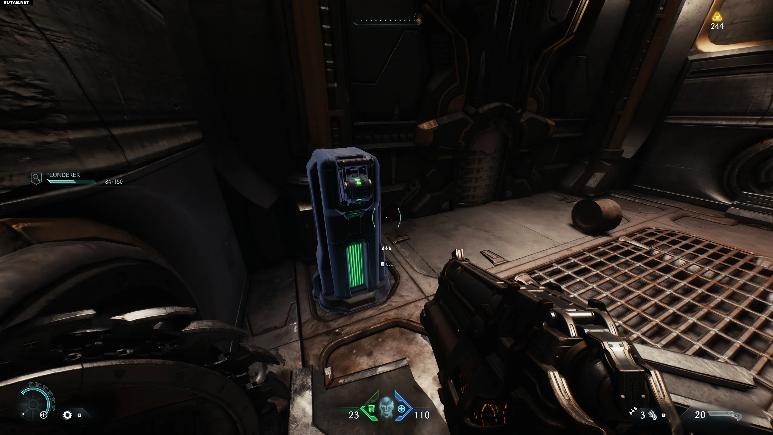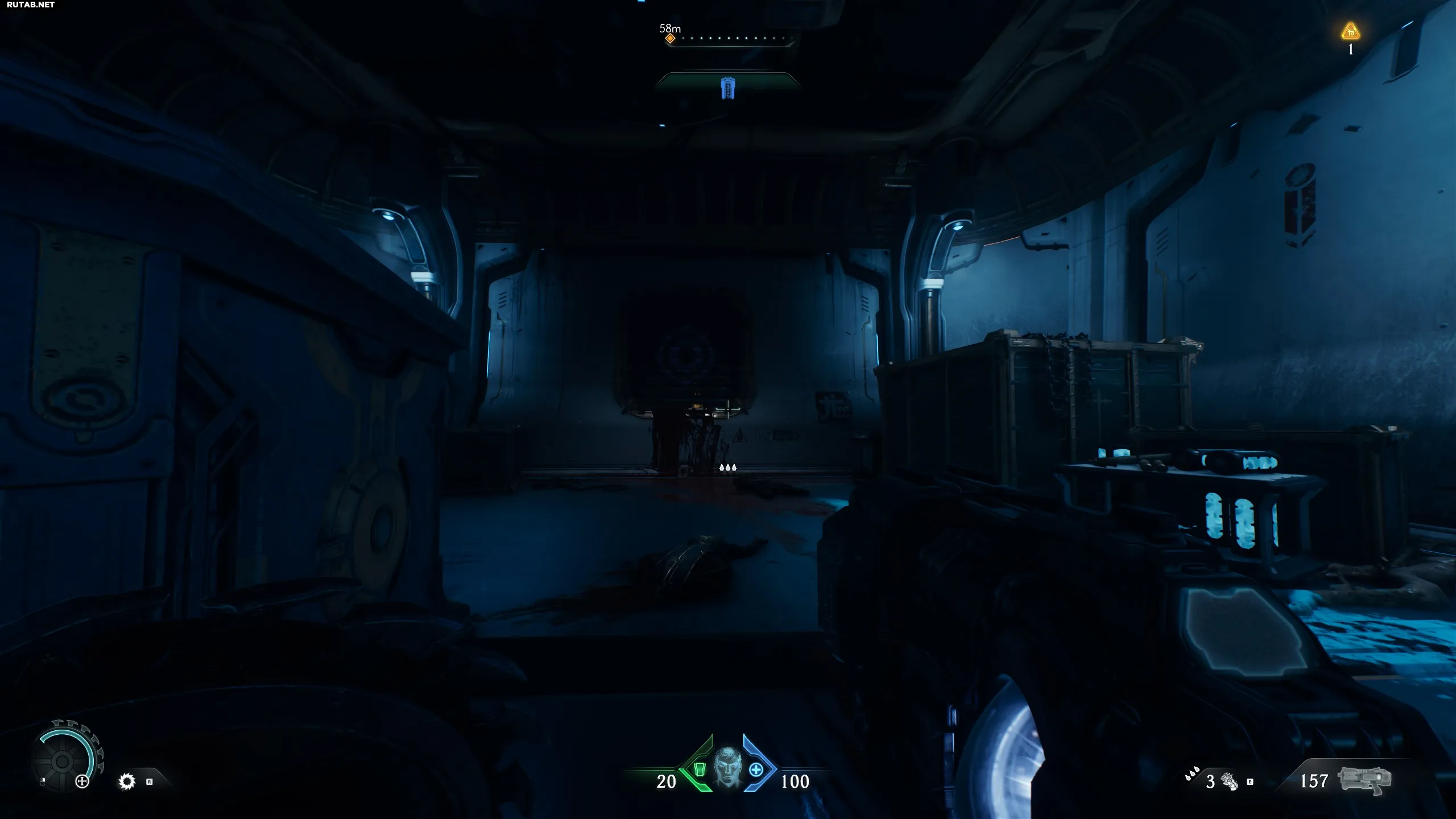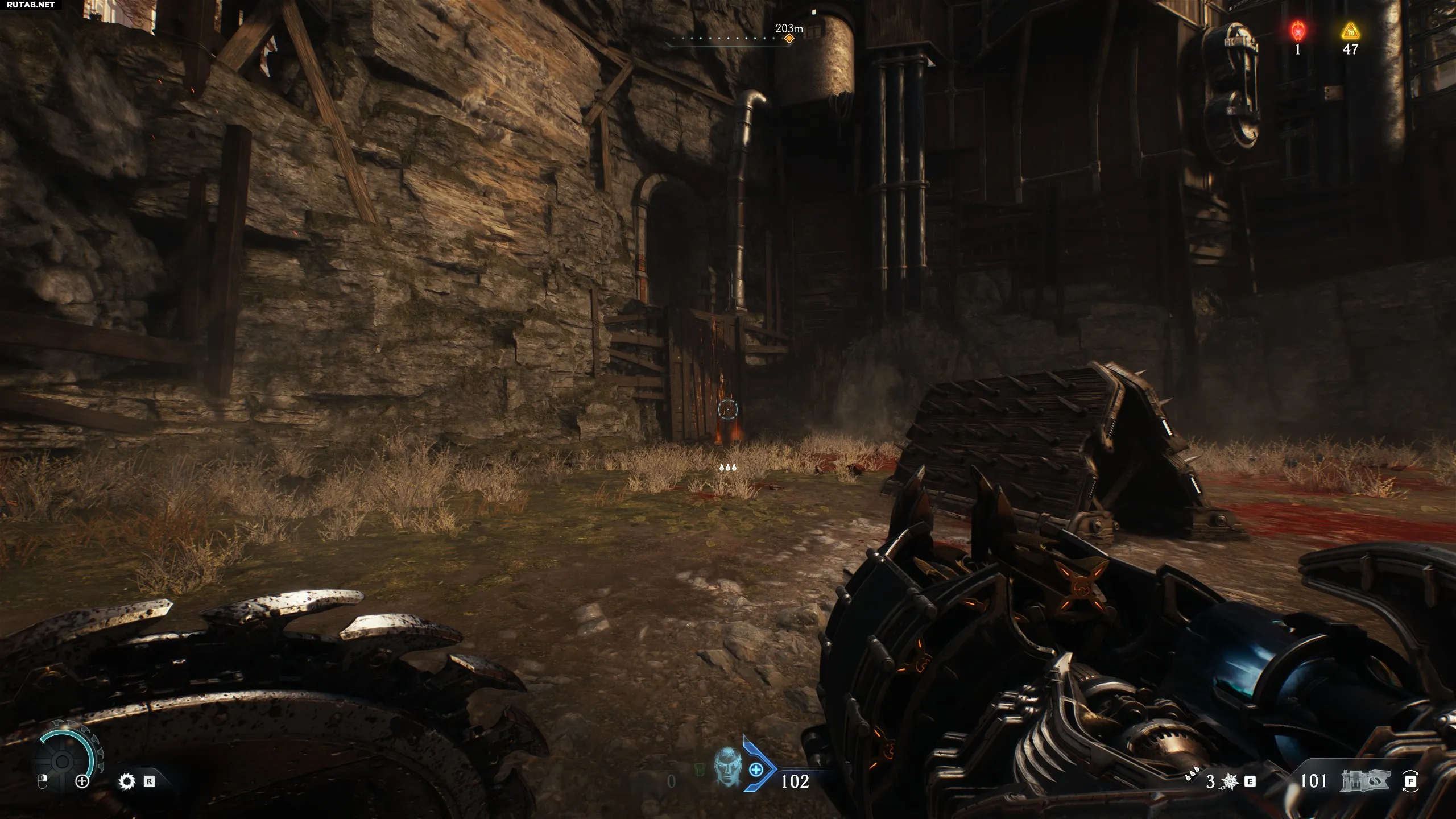 Следующая зона. Вам нужно будет открыть ворота, разбив цепи Щит-пилой. Вместо этого идите налево, за ящики.