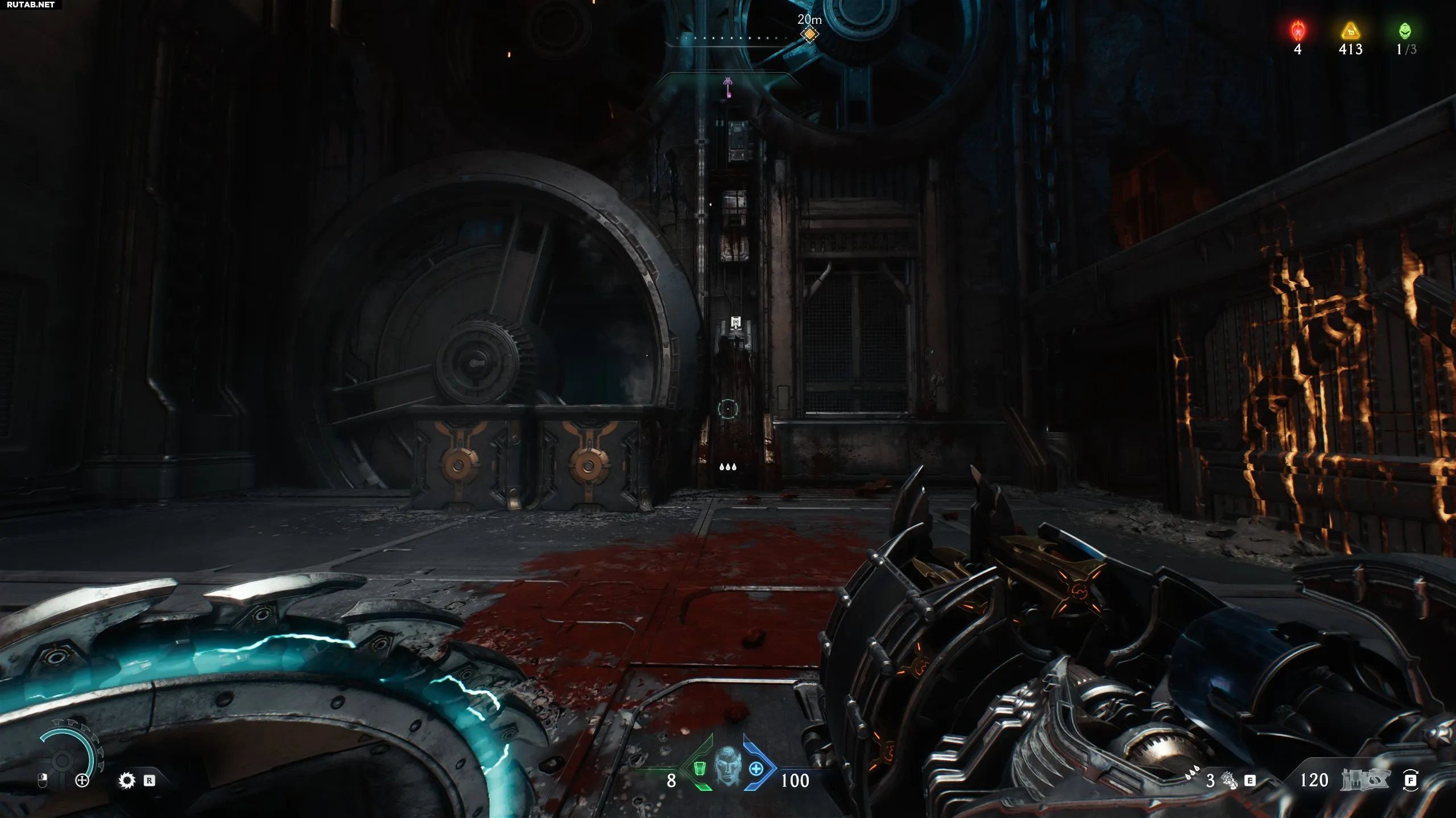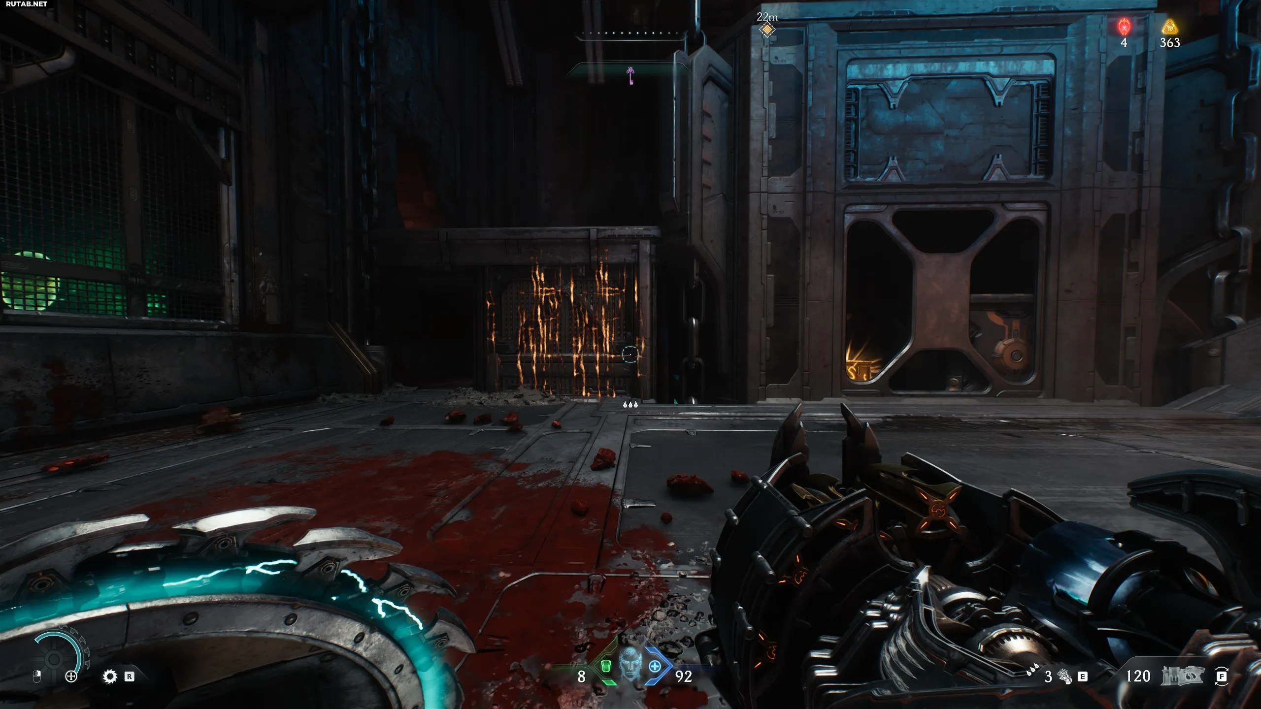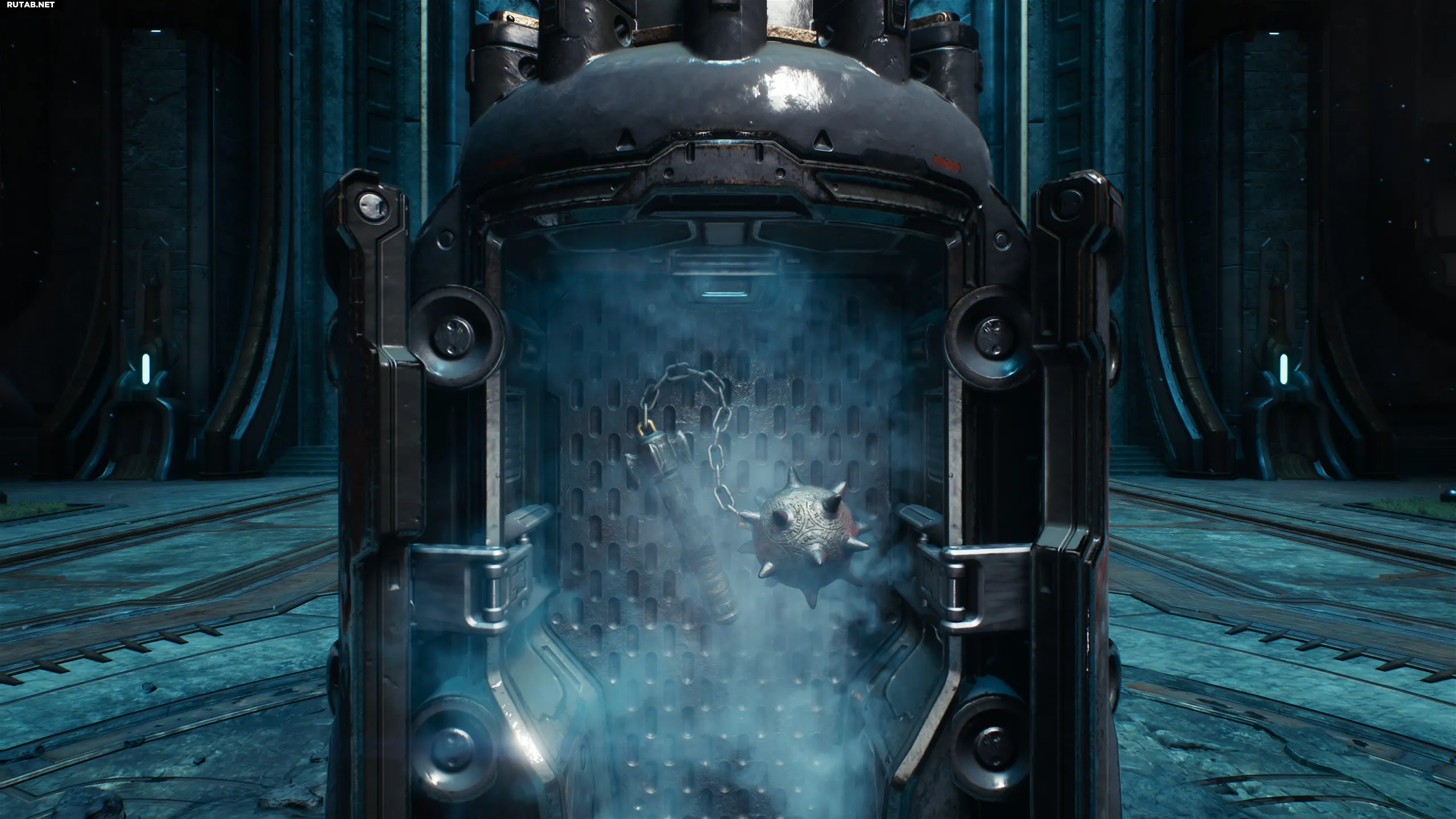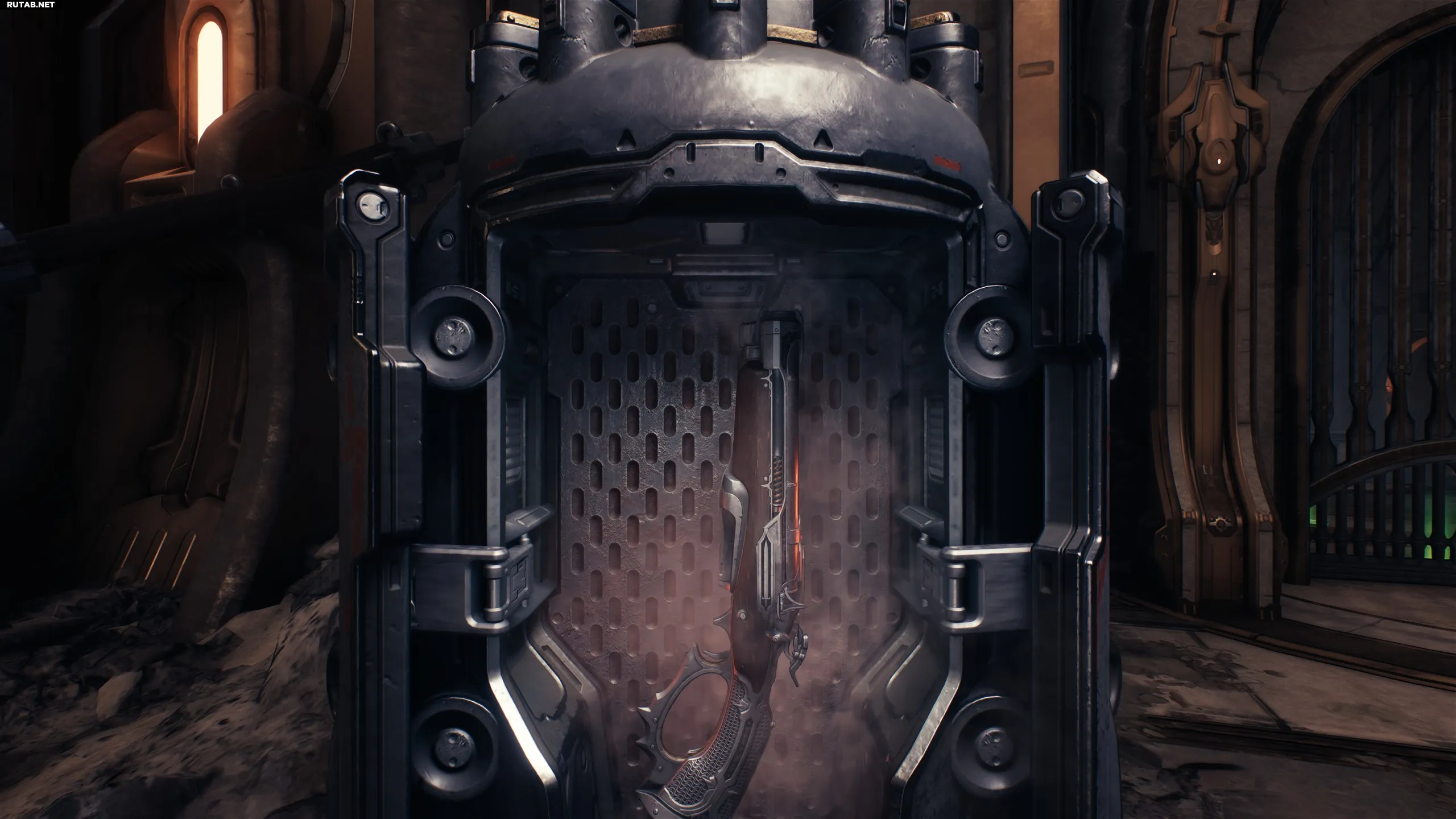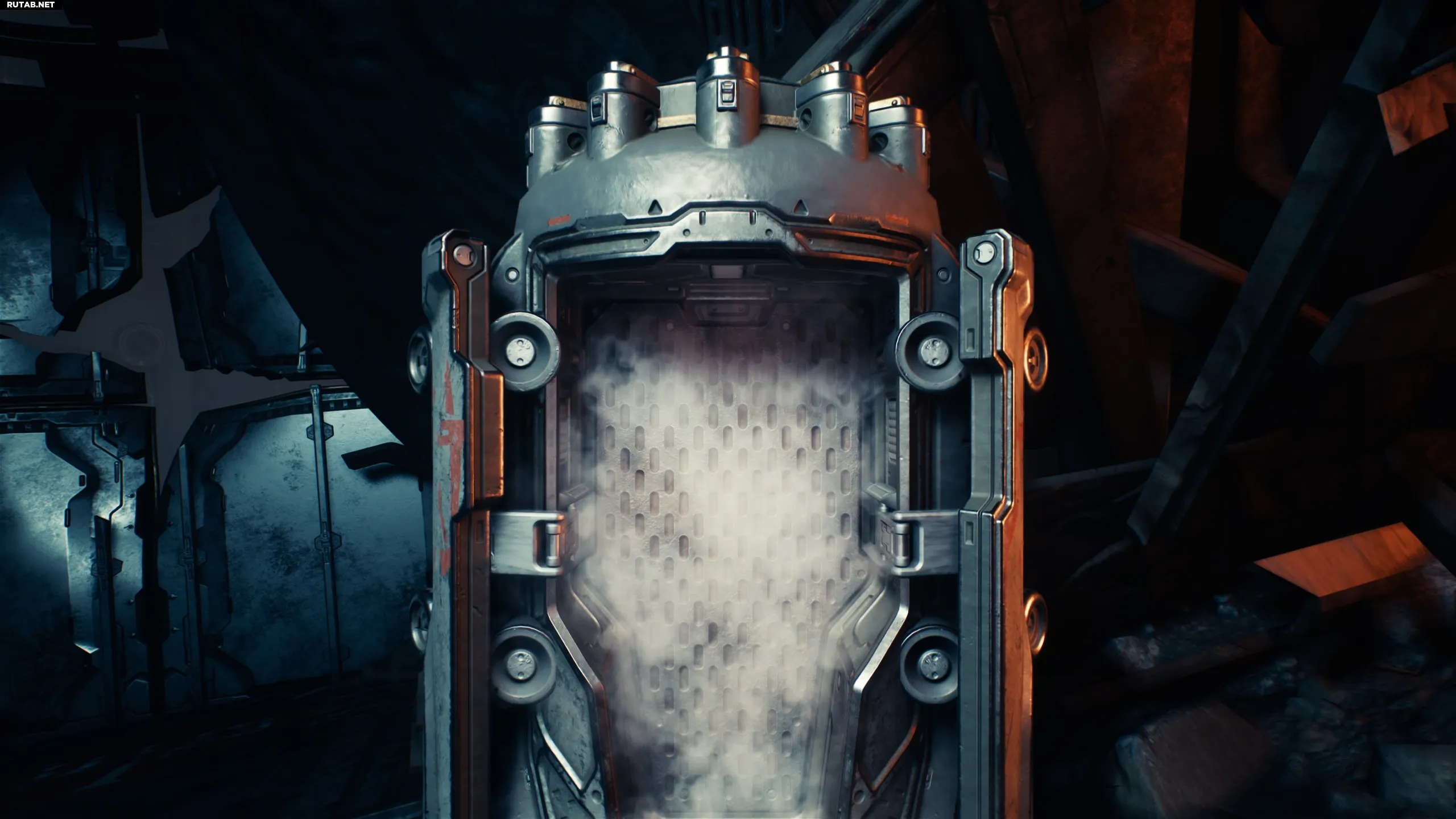 Спустя пару минут после начала вы увидите капсулу с Силовой перчаткой внутри. Это аналог огнемёта из Doom Eternal.