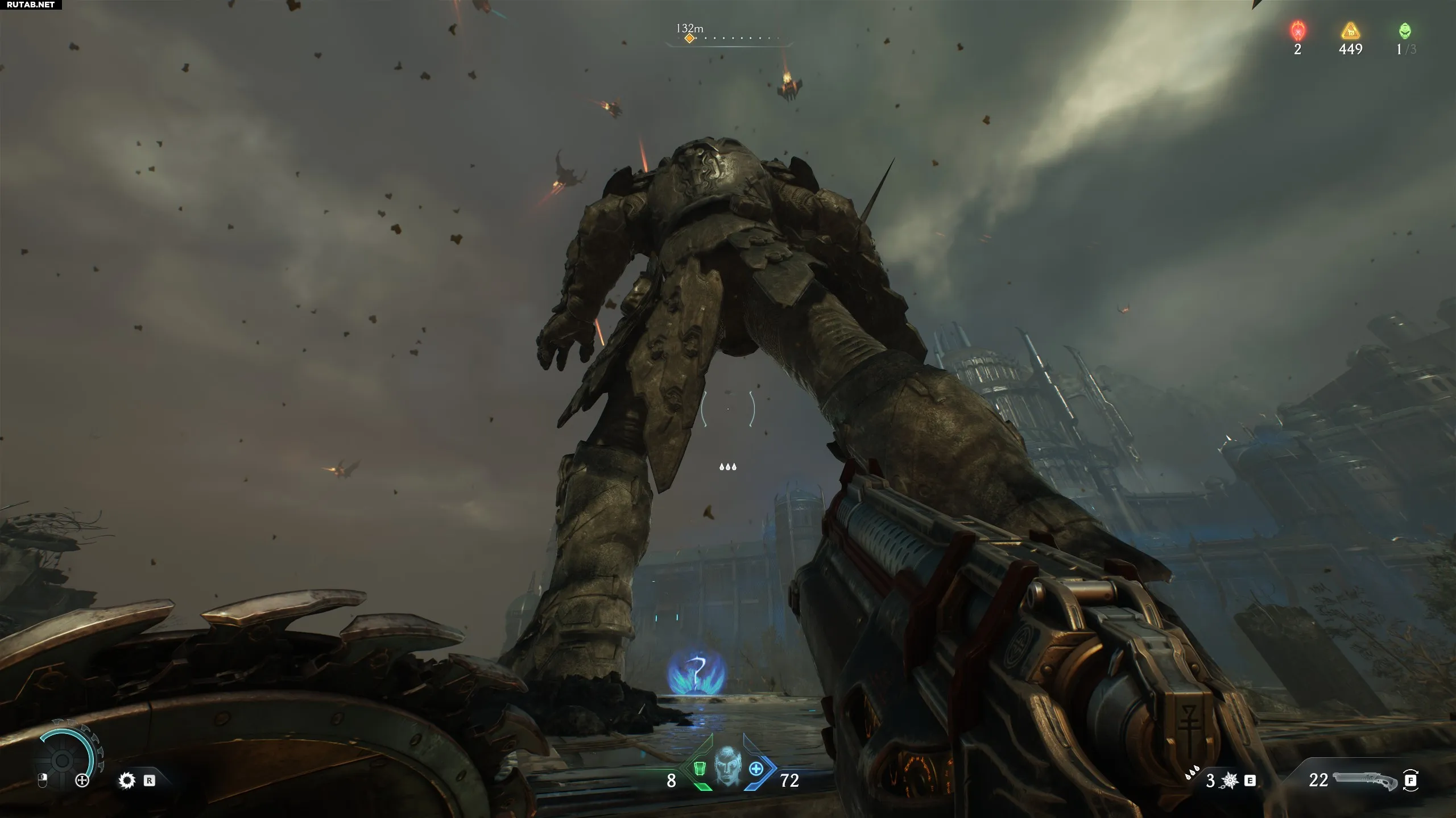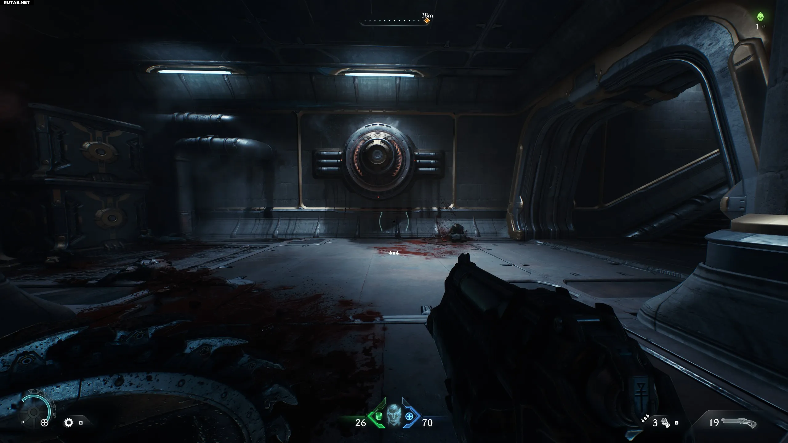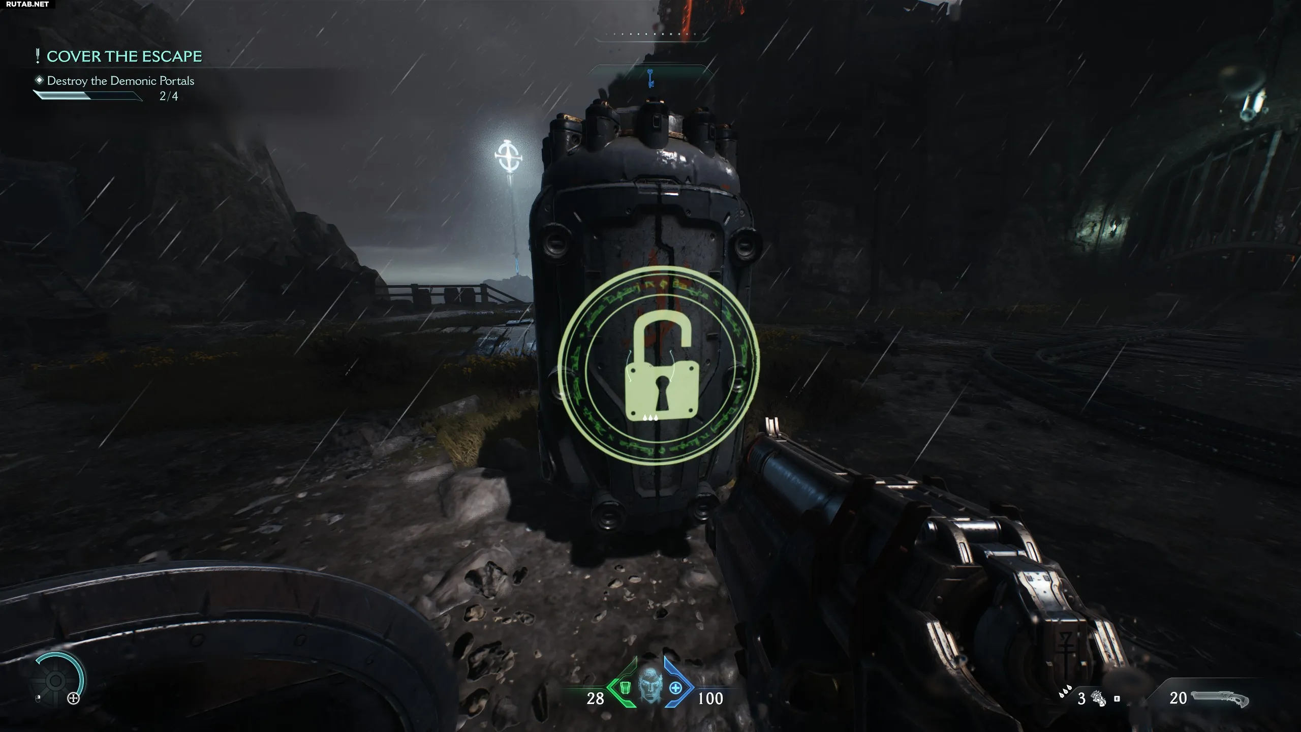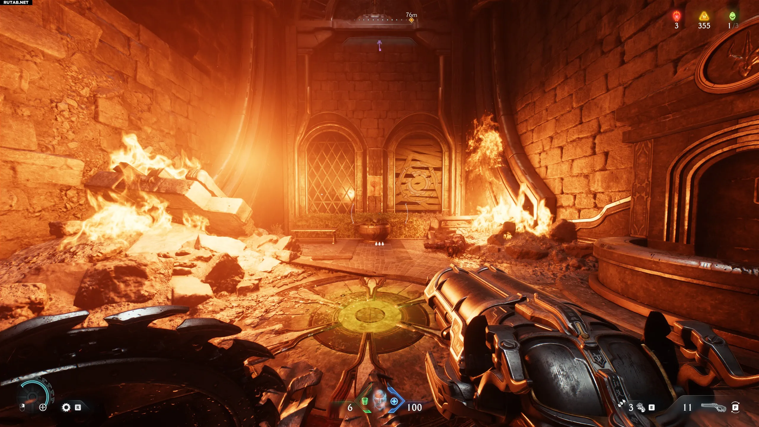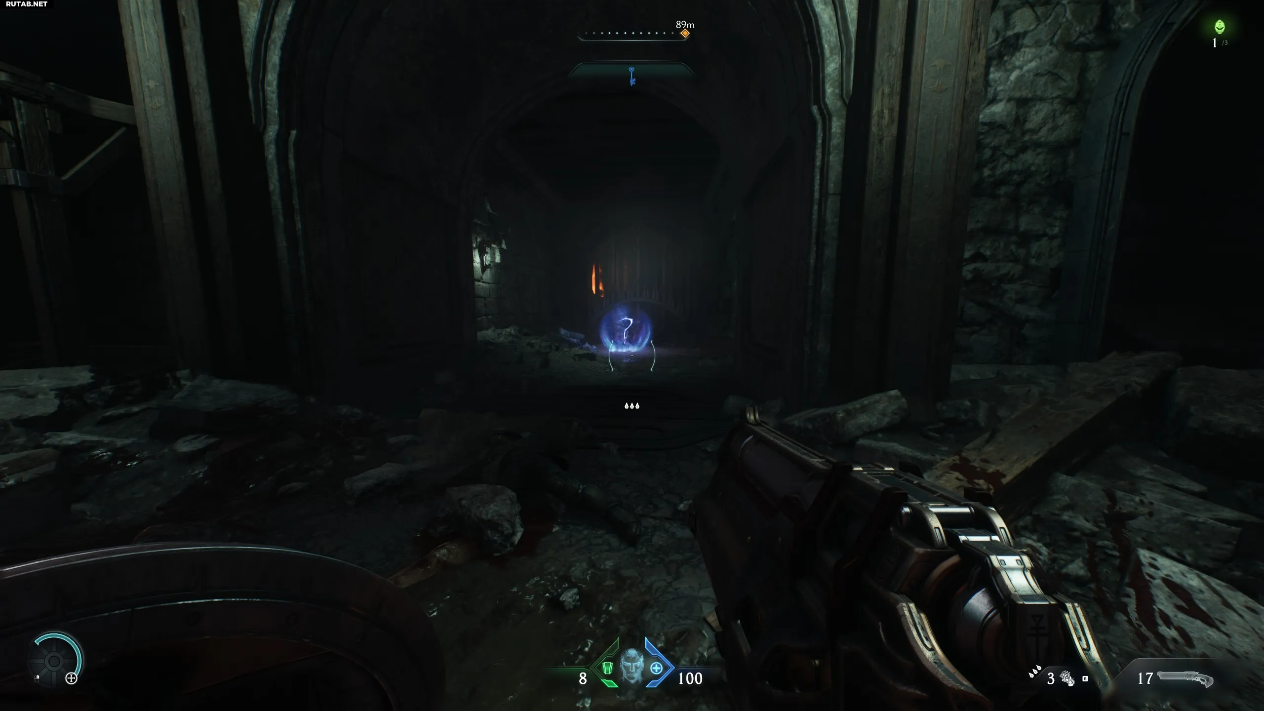 Спустя пару минут после начала вы увидите капсулу с Силовой перчаткой внутри. Это аналог огнемёта из Doom Eternal.