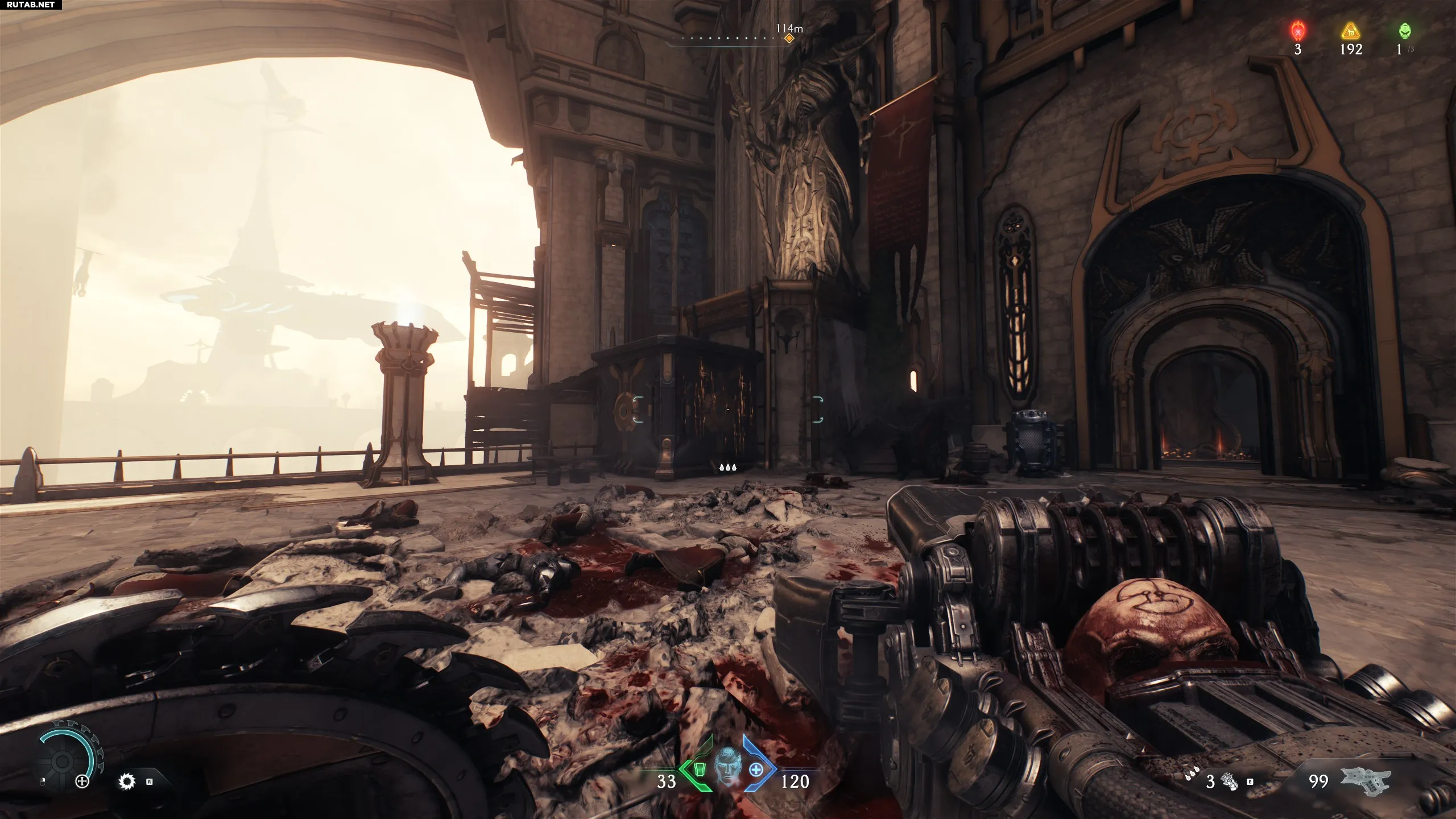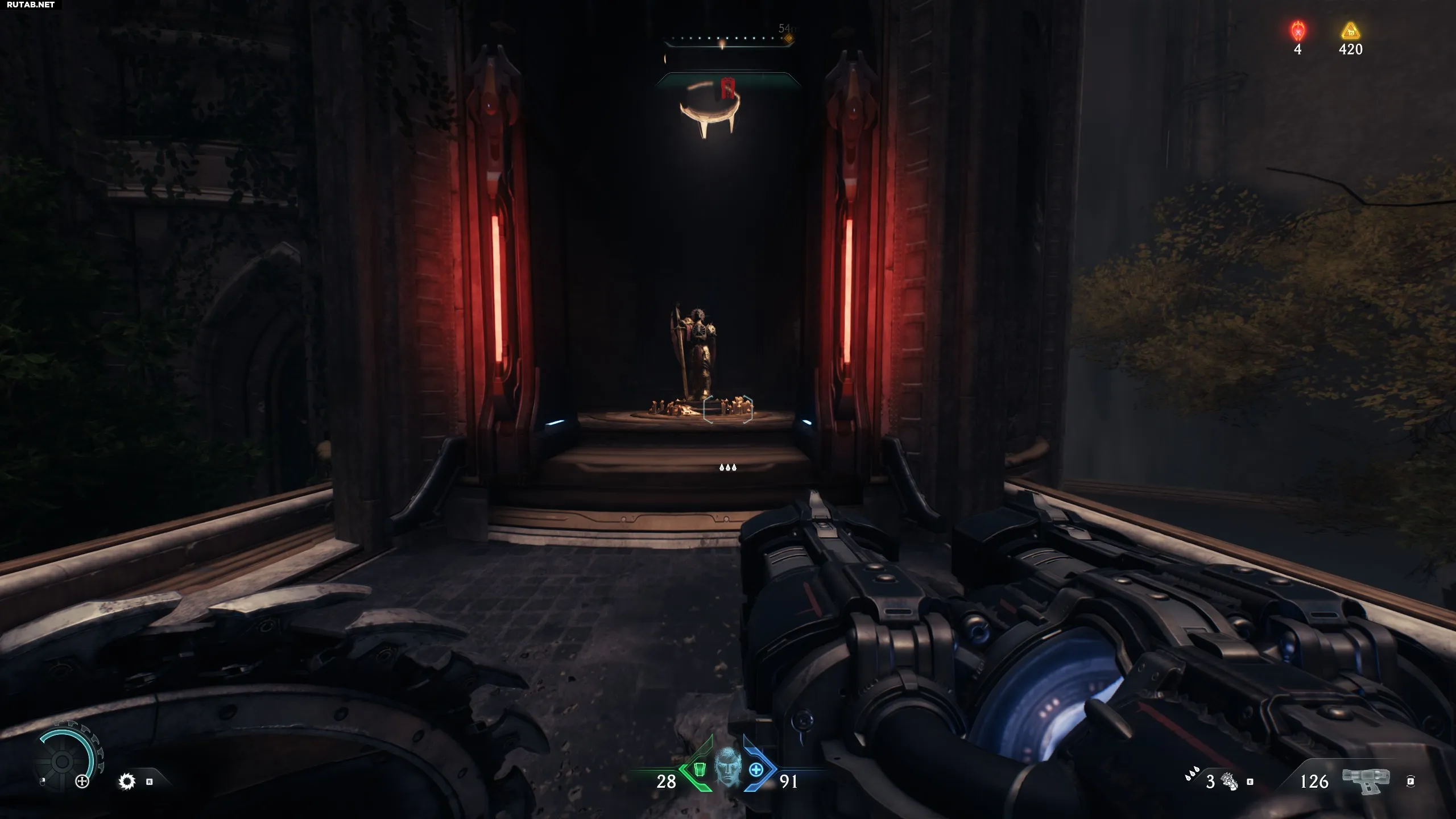 После очистки четырёх порталов зайдите в собор, после чего начнётся новый бой на арене. После боя вам нужно будет двигаться вперёд. Соберите 5 пластин брони и поверните направо. Взберитесь по стене, и там вы найдёте запись кодекса.