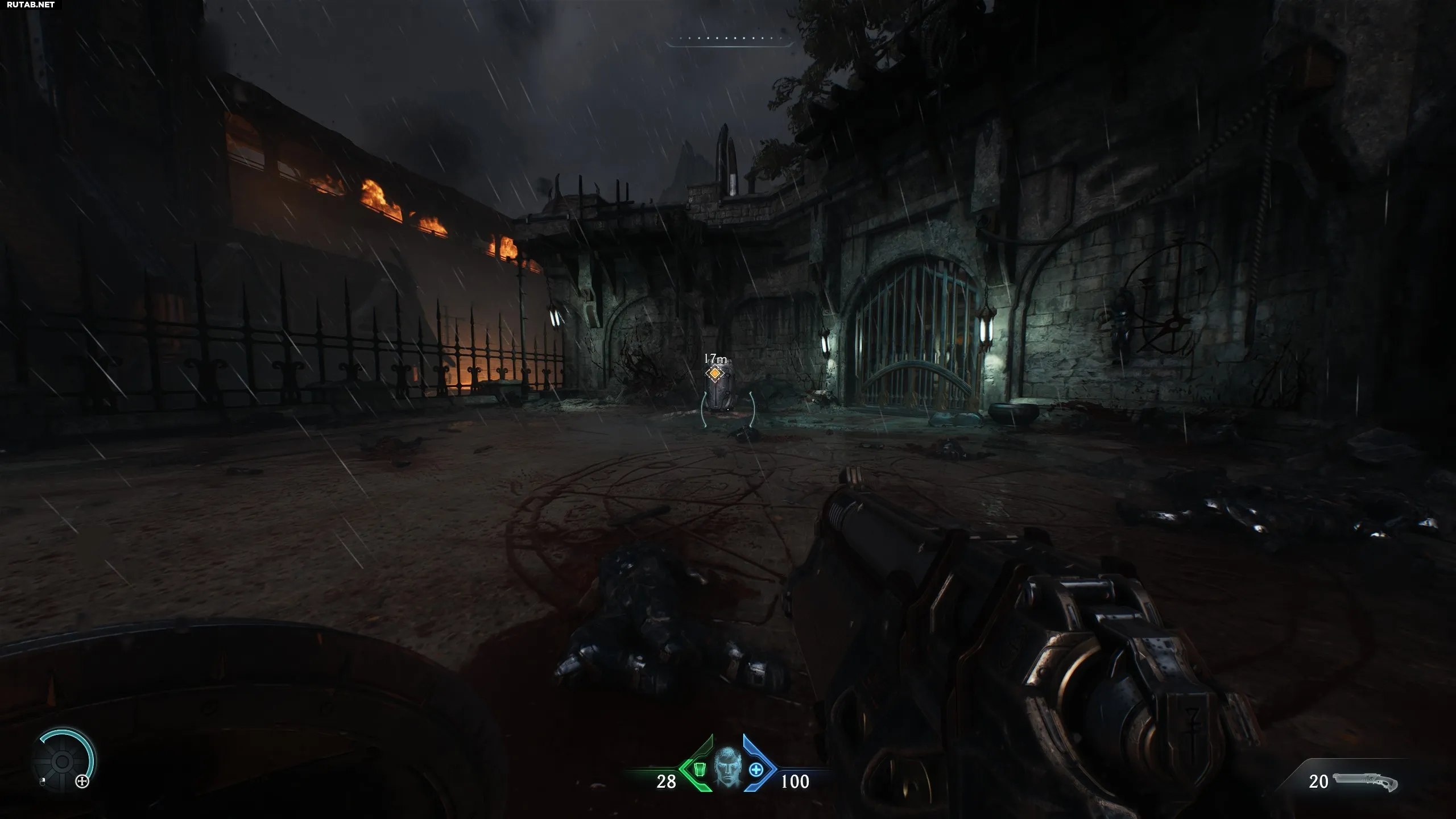 После того как вы войдёте в здание в зоне с турелью, очистите территорию, разбейте цепь, чтобы подняться, и развернитесь на 180 градусов. Там будет разрушаемая деревянная стена.
