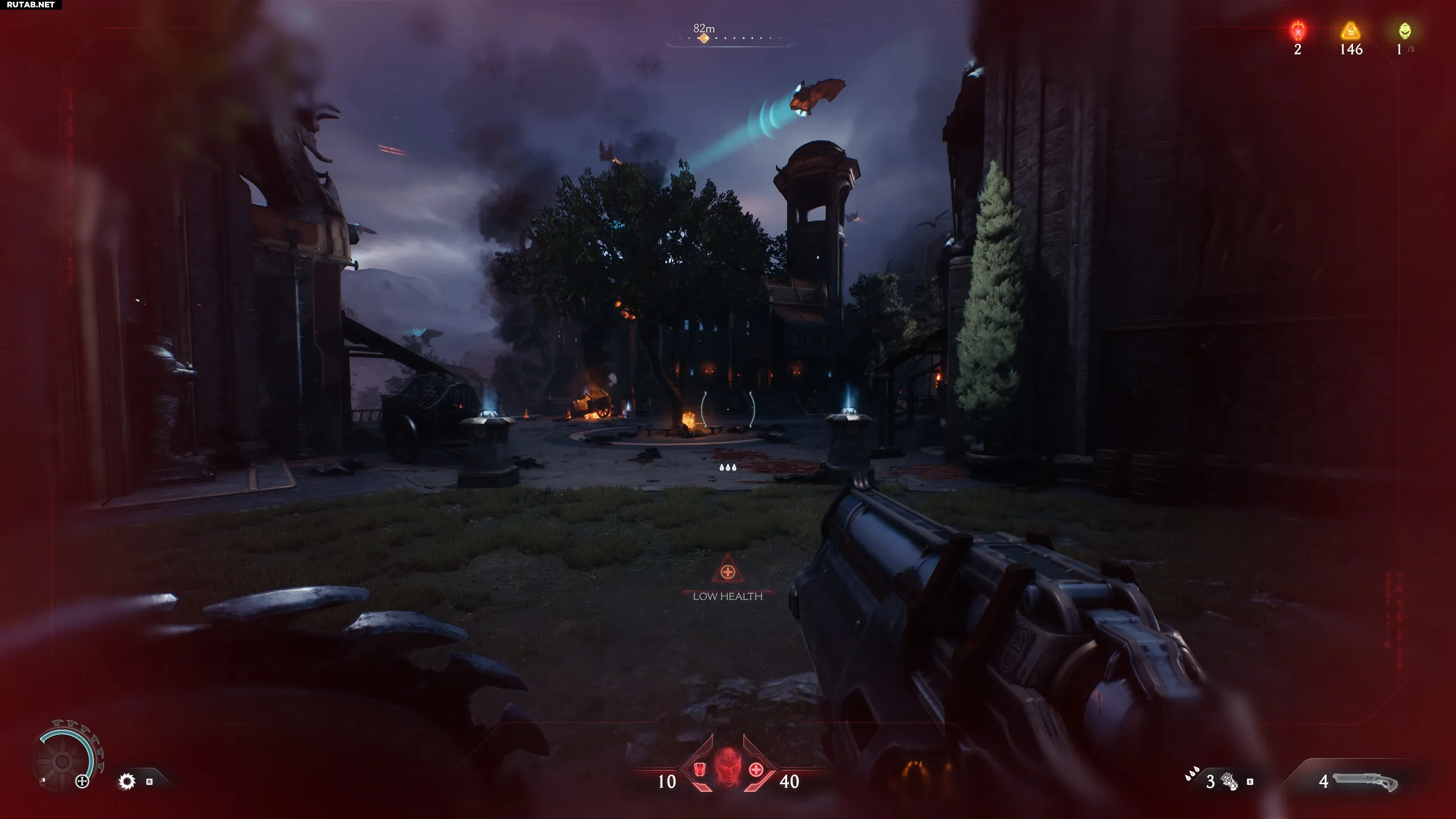 Зайдите в первое здание, поверните налево и проломите полуоткрытую дверь. В этой же комнате вы найдёте дополнительную жизнь.