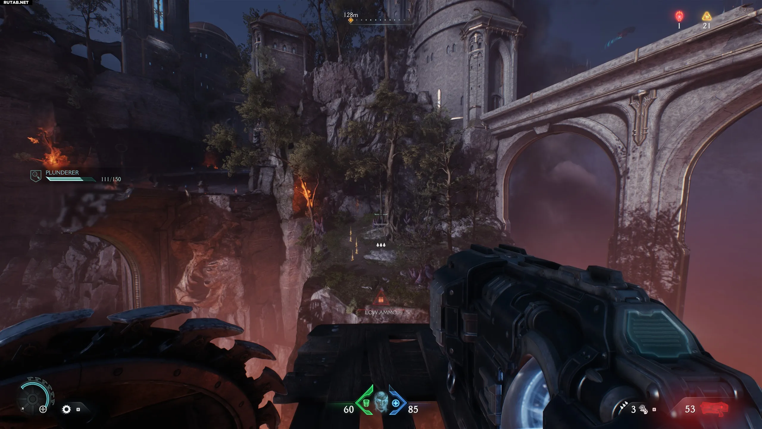 Сразу после получения Демонической сущности повернитесь туда, откуда пришли, и найдите небольшой разрушенный мостик с пластинами брони. С мостика перепрыгните на следующий «островок» и соберите золото и дополнительную жизнь.