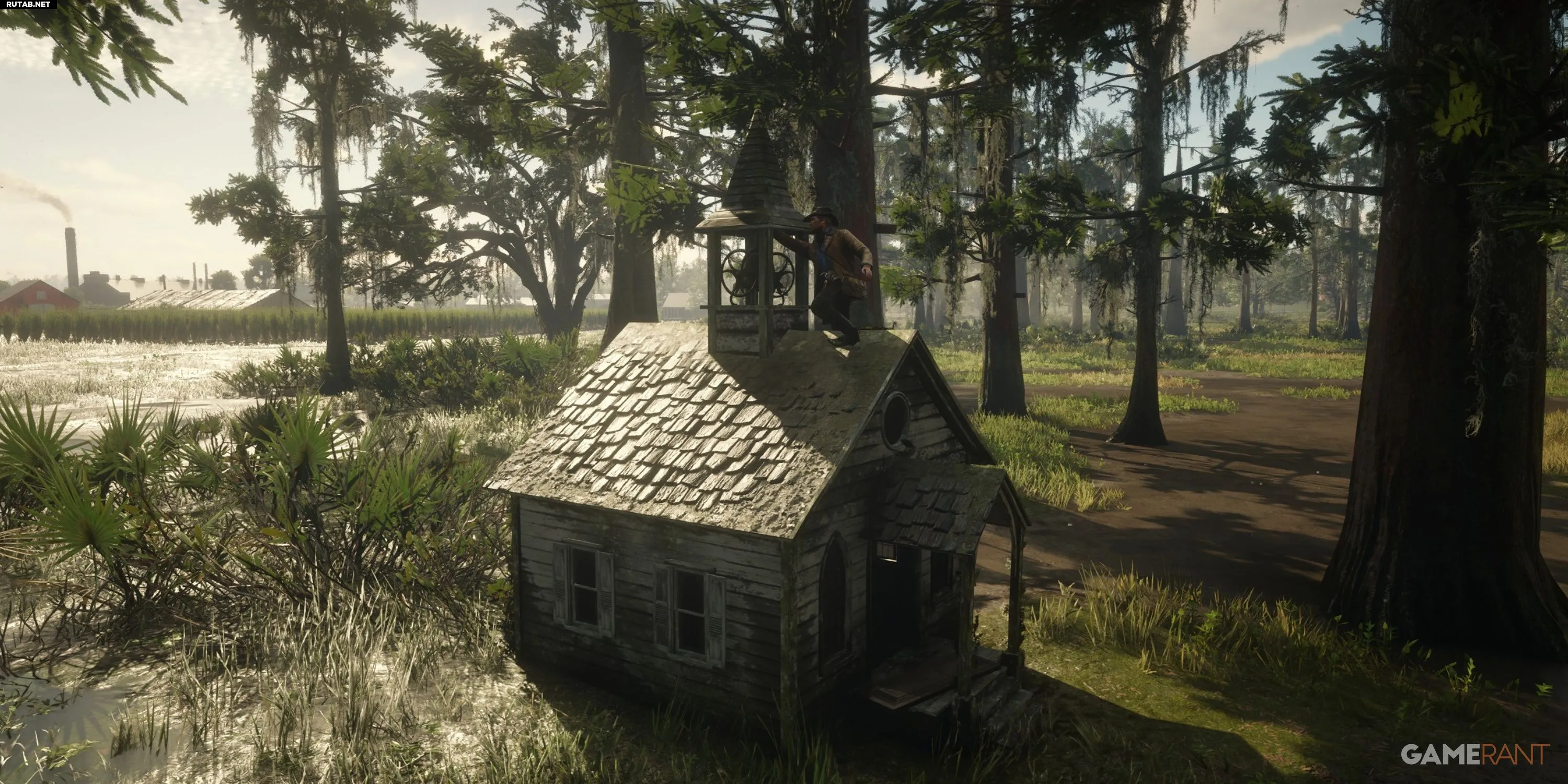 Играм не нужны городские просторы, чтобы привлечь внимание, и Red Dead Redemption 2 тому доказательство — она потрясающа и без мегаполисов. Дикая природа Дикого Запада предлагает захватывающие виды на озёра, реки и горы, которым мало какие игры могут соответствовать. Однако среди лесов скрываются и загадочные места, особенно в рамках квеста на поиск сокровищ «Достопримечательности богатства».